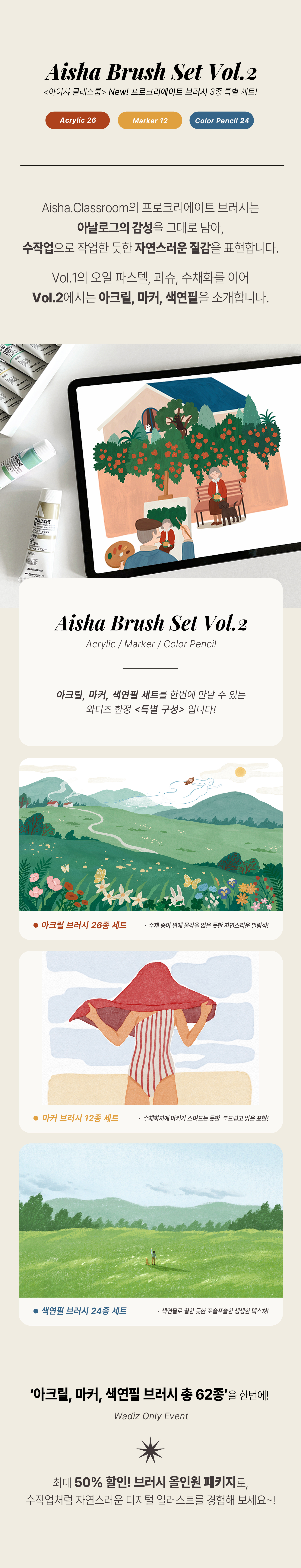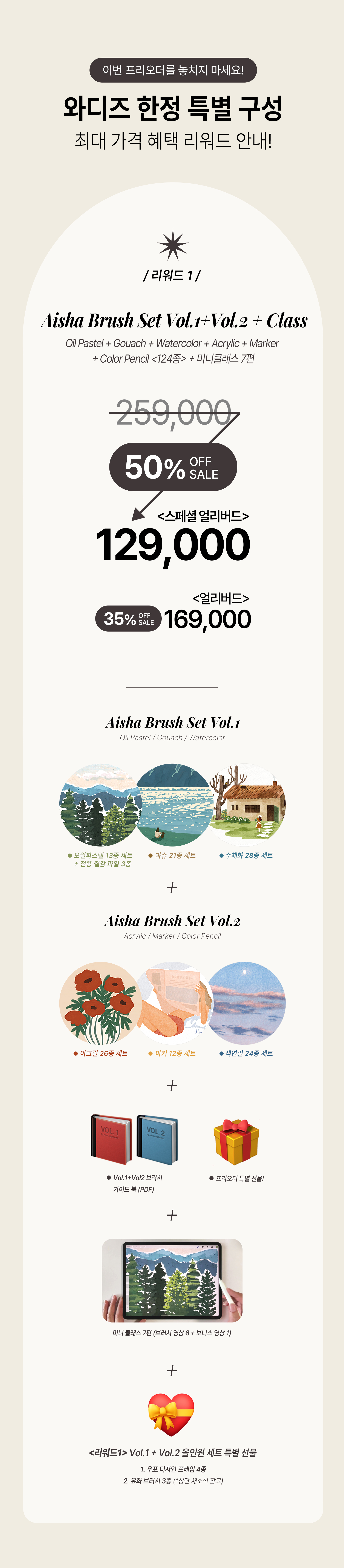 따뜻한 감성과 실무 퀄리티를 모두 담은 Aisha Brush Set 124종 올인원 패키지,