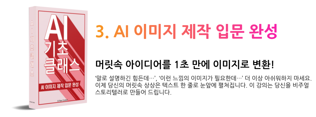 경쟁자들은 이미 AI라는 강력한 무기를 장착하고, 한발 앞서 달려 나가고 있습니다. ‘나중에’라는 말로 당신의 무한한 가능성을 미루지 마십시오. 망설임을 끝내고, 미래를 위한 첫걸음을 내딛으세요. 단순한 업무 반복을 넘어, 누구도 상상하지 못한 창작을 하고, 새로운 커리어를 열고, 당신의 가치를 증명할 시간입니다.