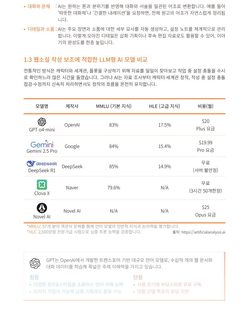 무료 버전: 구형 AI 모델(예: ChatGPT-3.5)을 기반으로 하여, 부정확하거나 창의성이 부족한 결과물을 생성합니다.