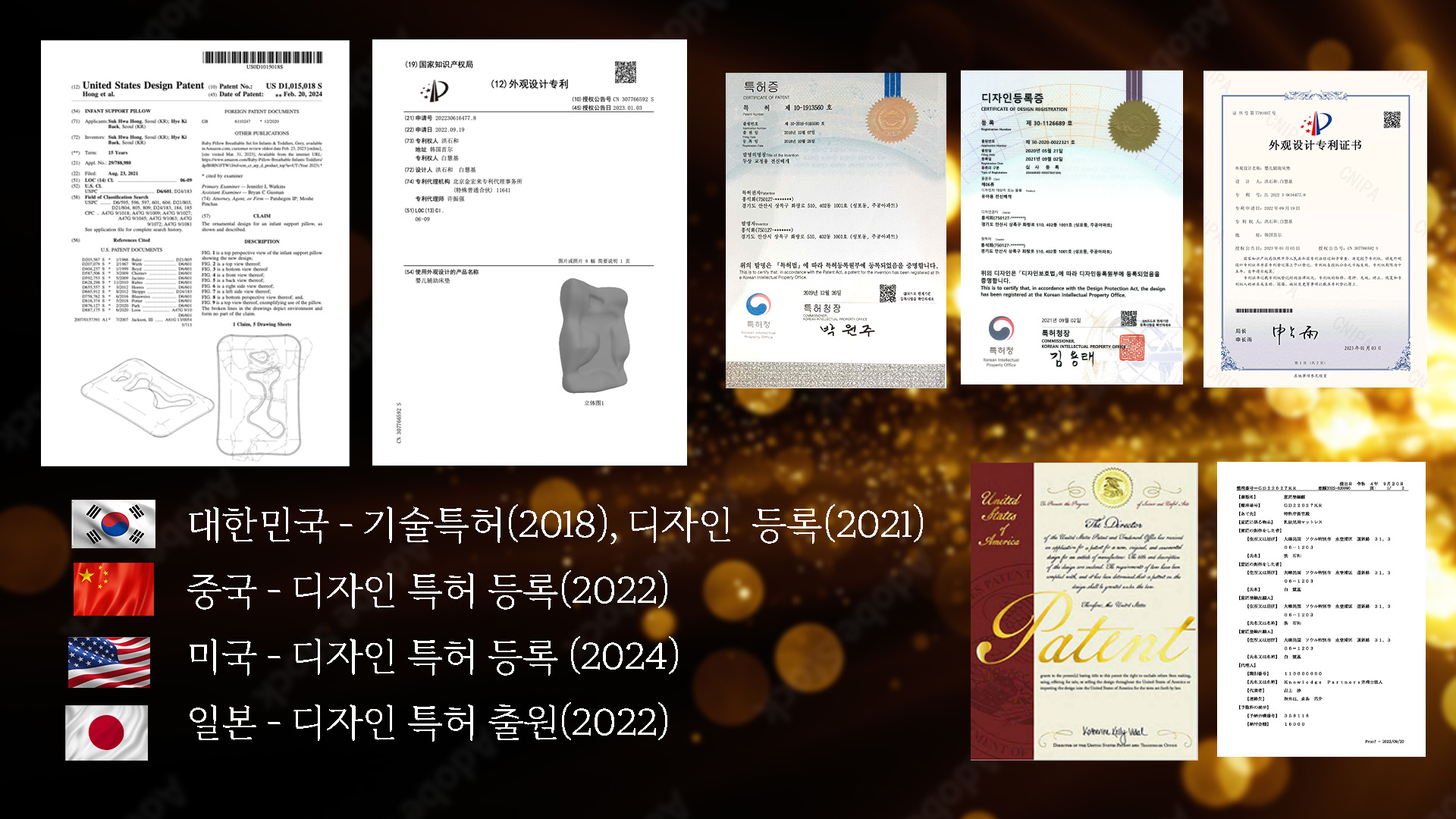 모두베개는 국제적인 특허와 안전 인증으로 창의성과 안전성을 검증받은 제품입니다.