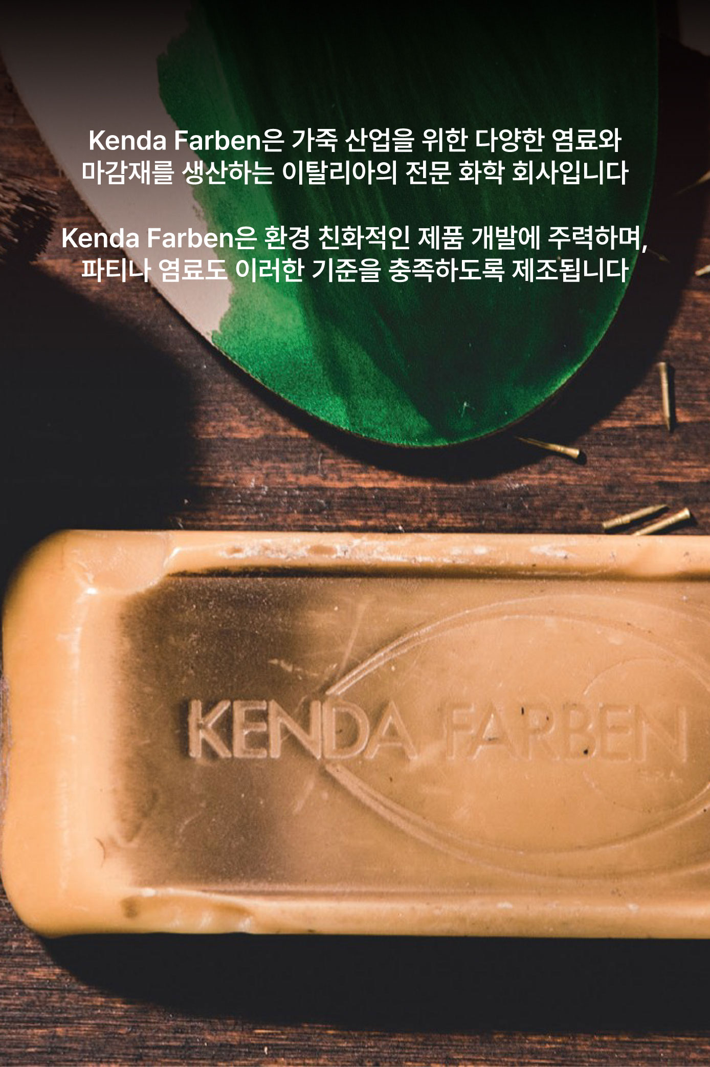 마리오 미나르디의 장기인 파티나 염색으로 완성했습니다. ITALY KENDA FARBEN사의 파티나 전용 고급 염료만을 사용, 수천번의 붓질을 통해 수작업으로 진행되는 염색은 가죽의 질감을 잘 표현하고 입체적인 컬러감을 완성시켜 줍니다.