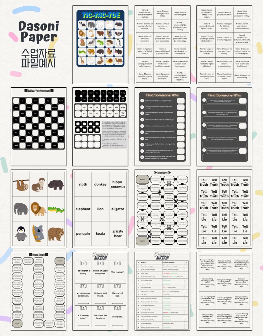 - 인쇄 후 쉽게 바로 사용 가능한 영어 게임 수업 자료 300+개