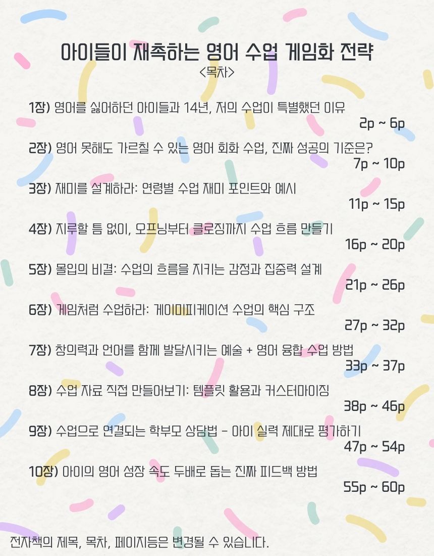 - "아이들이 즐거워하는 영어 수업 게임화 노하우" 전자책