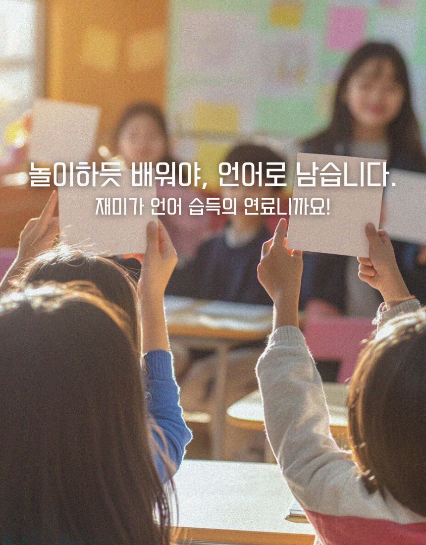 즉, 영어 수업이 재미있는 것이 되면, 단순히 학습을 즐기는 것이 아니라 영어로 얻을 수 있는 모든 문화와 예술을 진심으로 즐길 수 있게 됩니다.