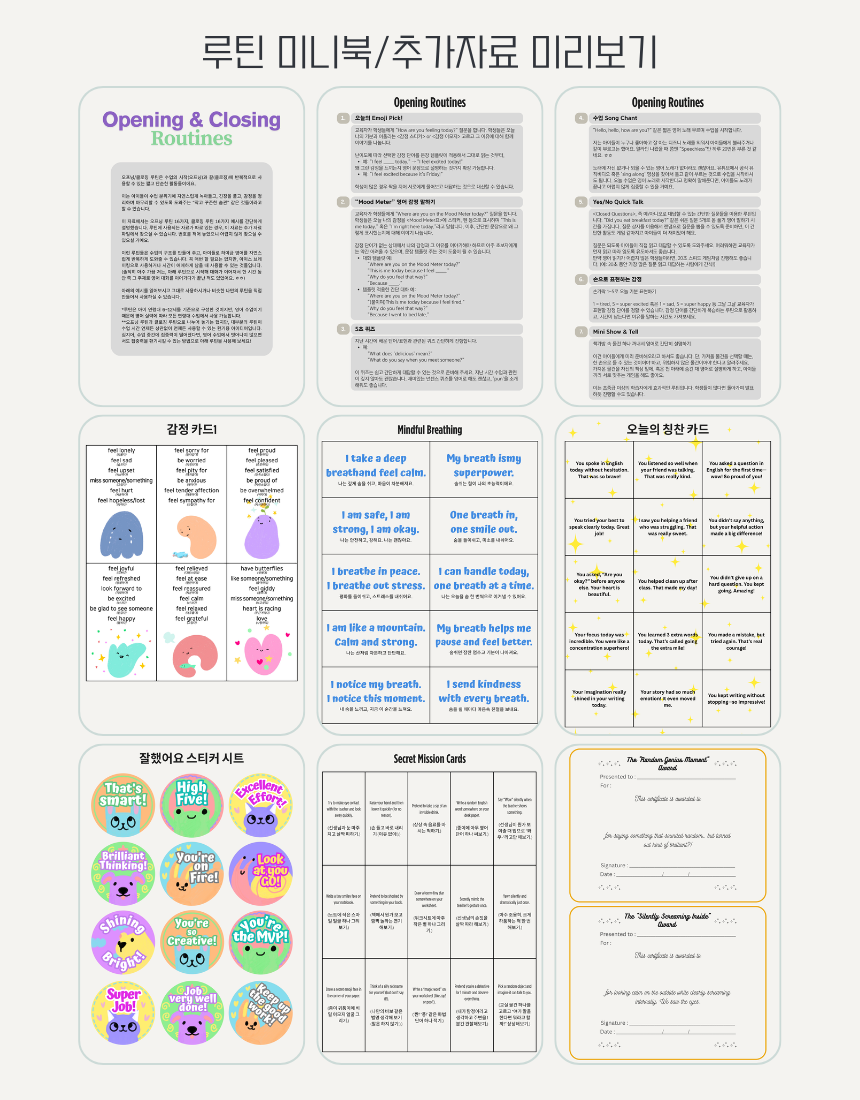 - "영어 교사를 위한 수업 오프닝 / 클로징 루틴 아이디어" 자료