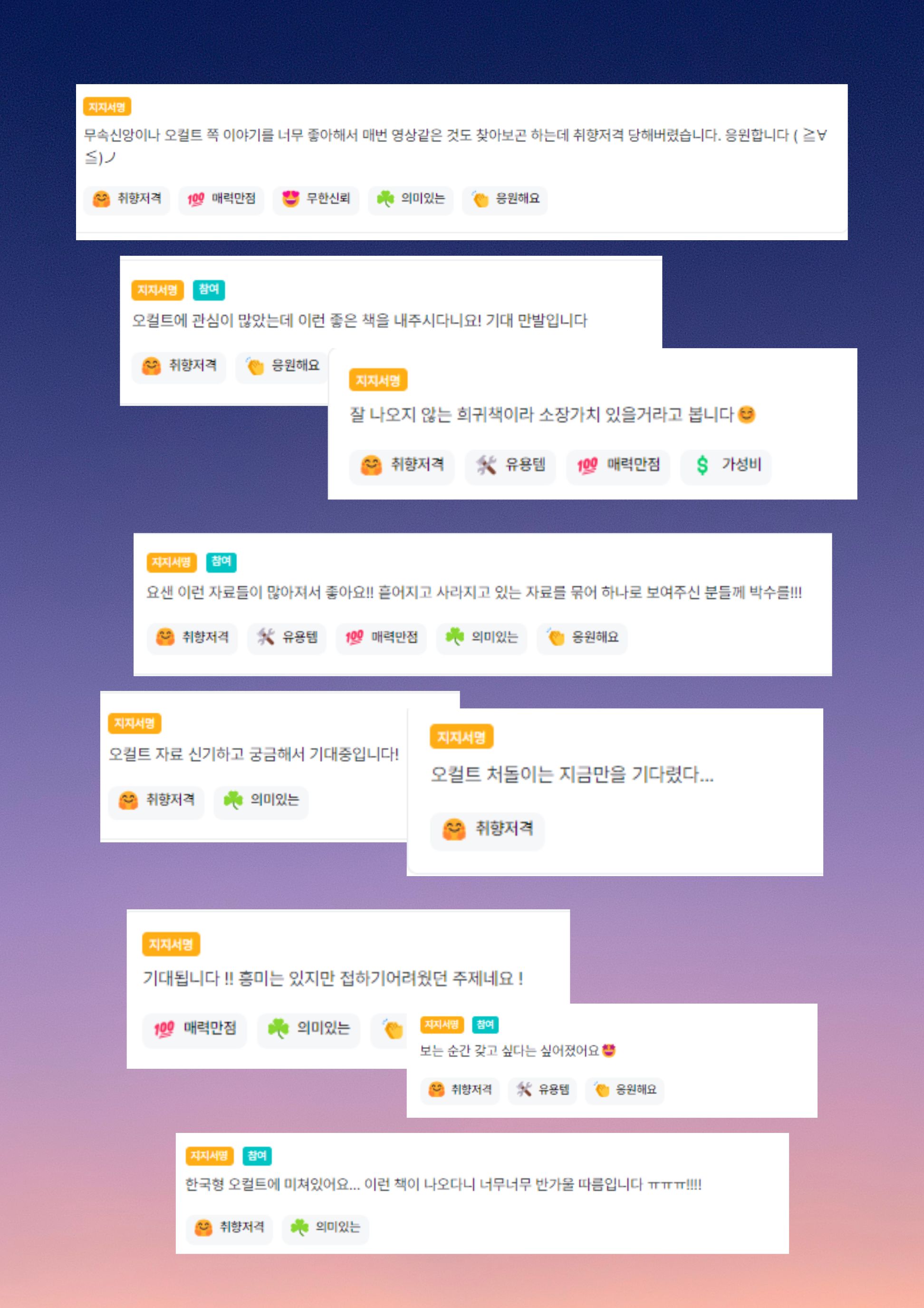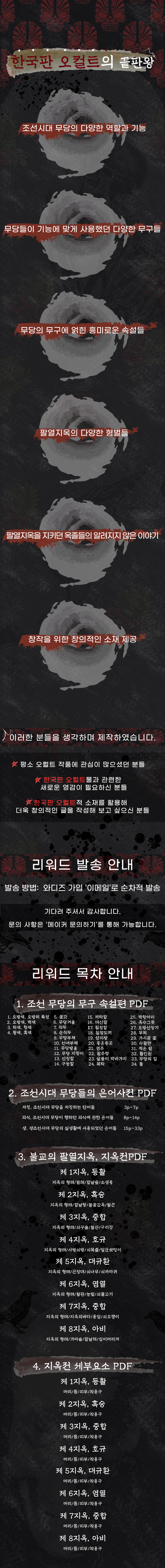 저를 기점으로 와디즈에서 한국의 신화와 전통 문화가 담긴 한국판 오컬트 시장이 활발히 열려 많은 사람들이 오컬트 자료를