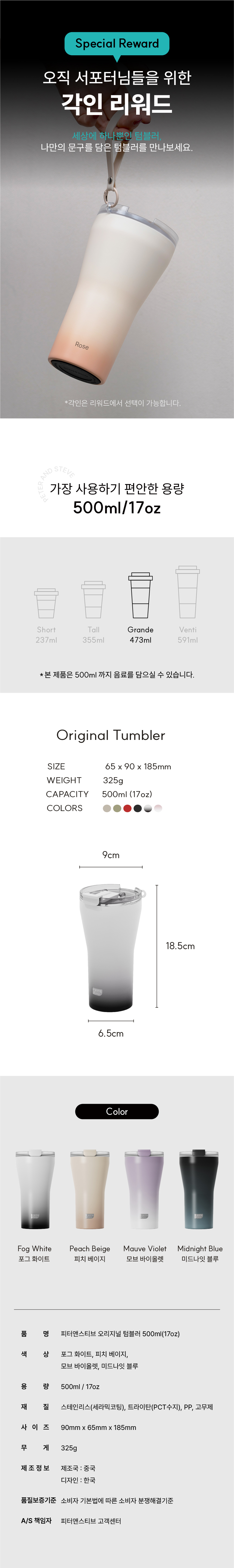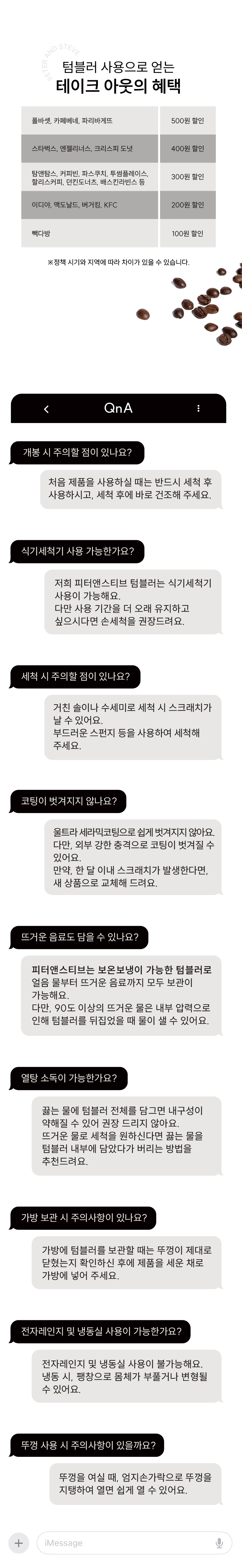 쇠맛/냄새착색/연마제 없는 울트라 세라믹 텀블러 피터앤스티브 (각인까지) (주)도담웨이브