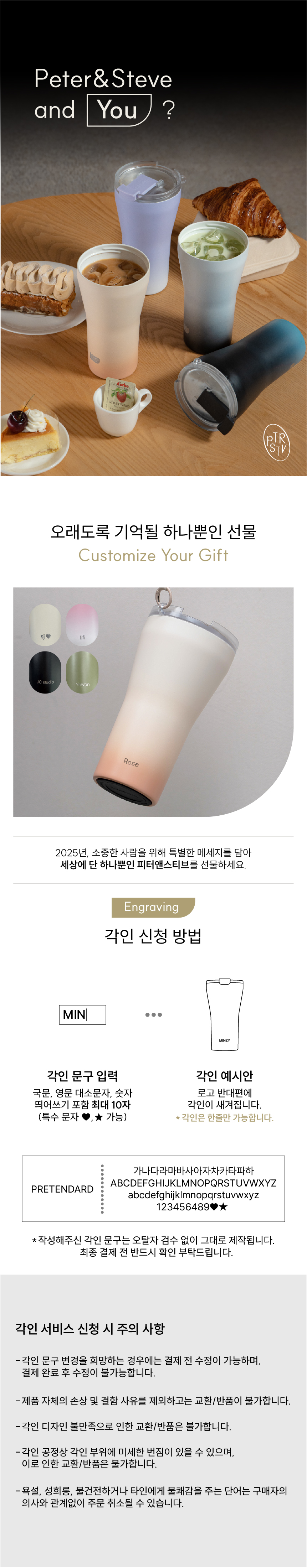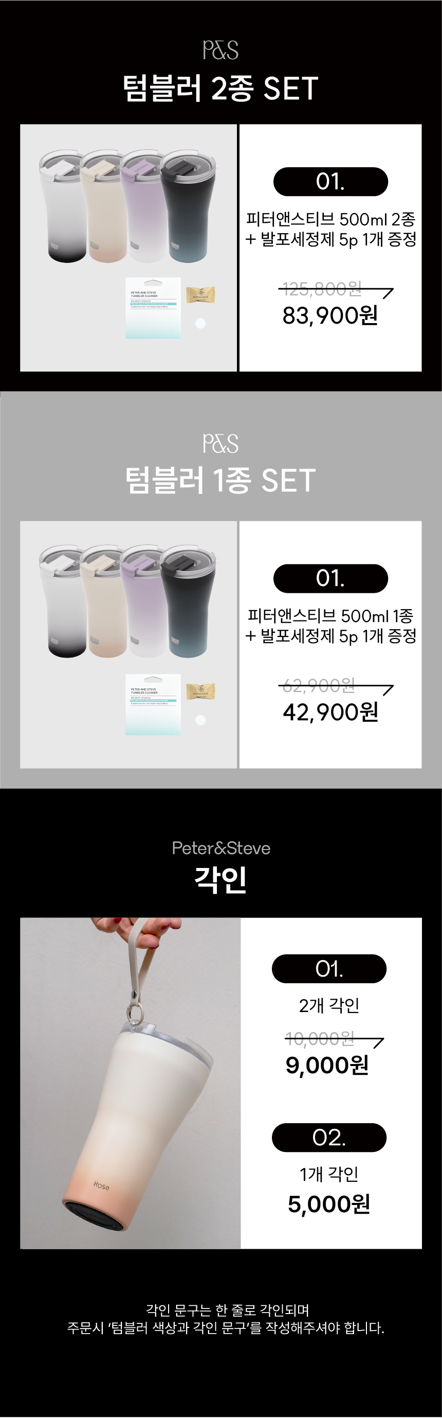 피터앤스티브는 아직 걸음마 단계의 브랜드입니다. 하지만 언젠가는 “Design by Korea”를 대표하는 글로벌 텀블러 브랜드로 성장하겠습니다.