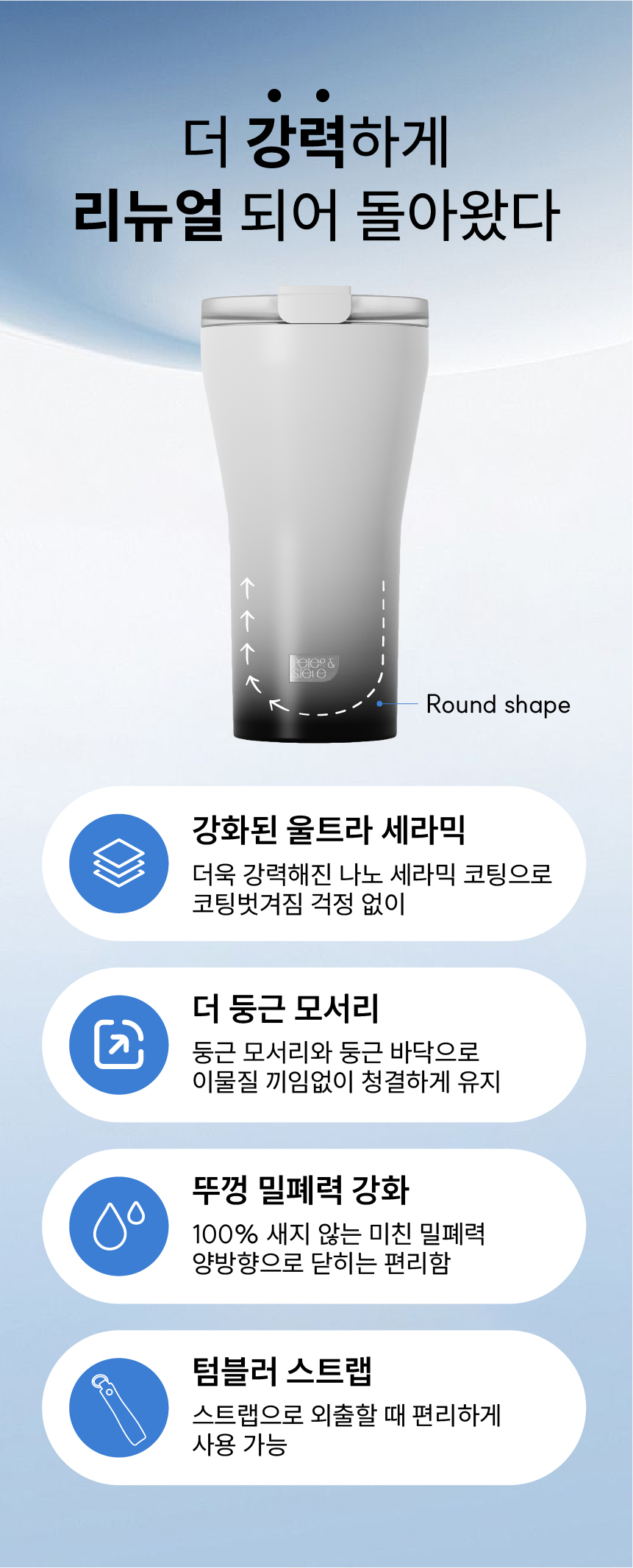 이는 앞으로 출시될 다양한 텀블러와 뚜껑 호환이 가능하도록 설계했기 때문입니다. 추후 출시될 대용량 손잡이 텀블러와도 자유롭게 호환될 예정입니다.