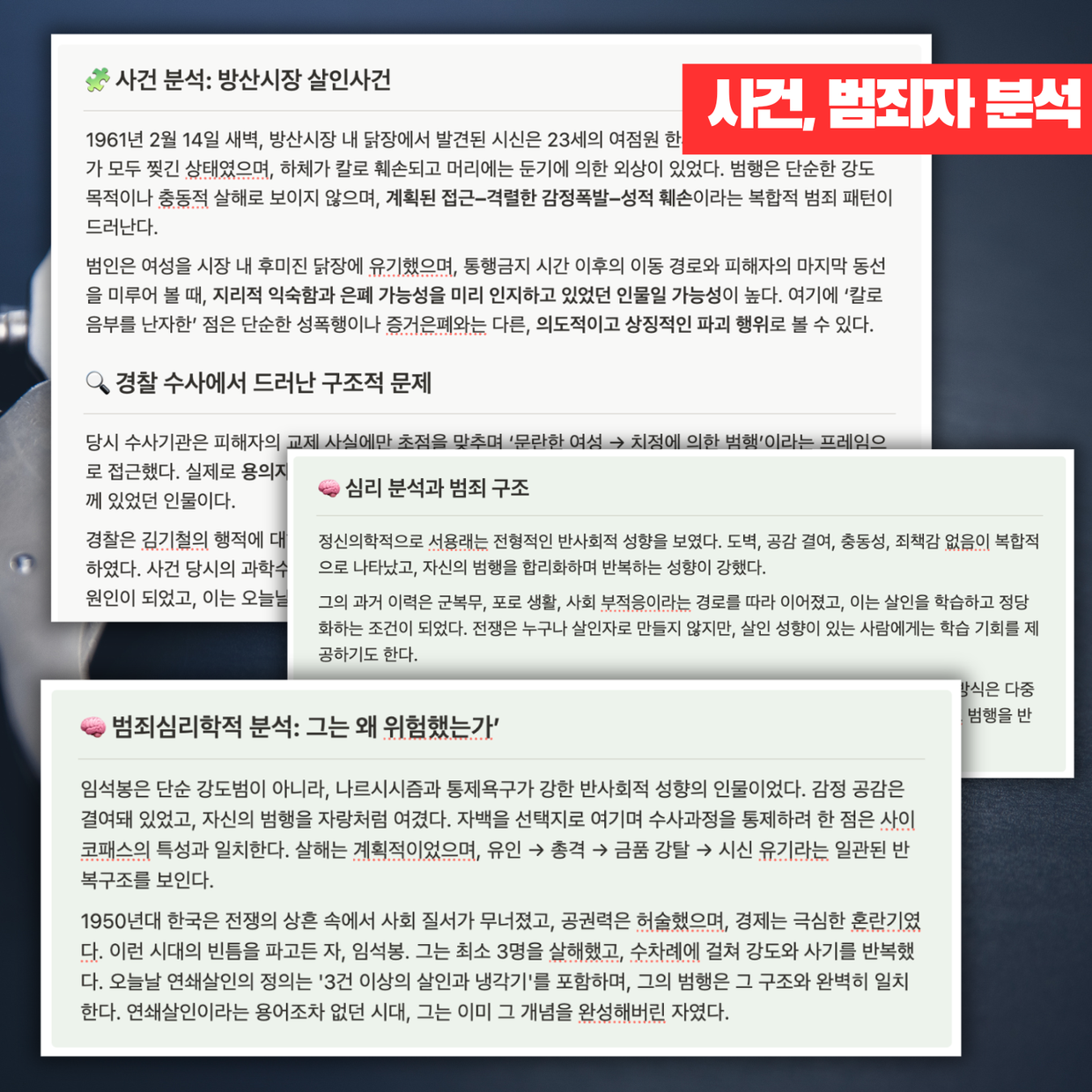 범죄는 단순한 비극이 아니라, 시대의 변화와 인간의 내면을 비추는 기록이라는 것.