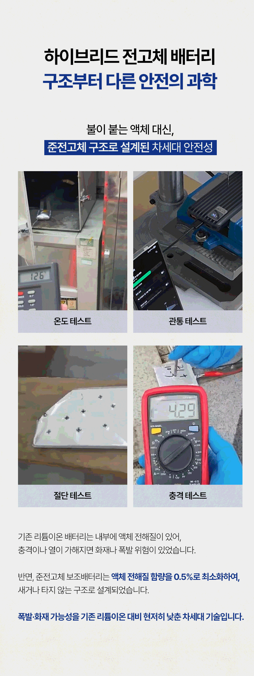 아직 생소할 수 있는 ‘준전고체 배터리’이지만, 그 기술력과 안전성은 충분히 입증되었습니다.