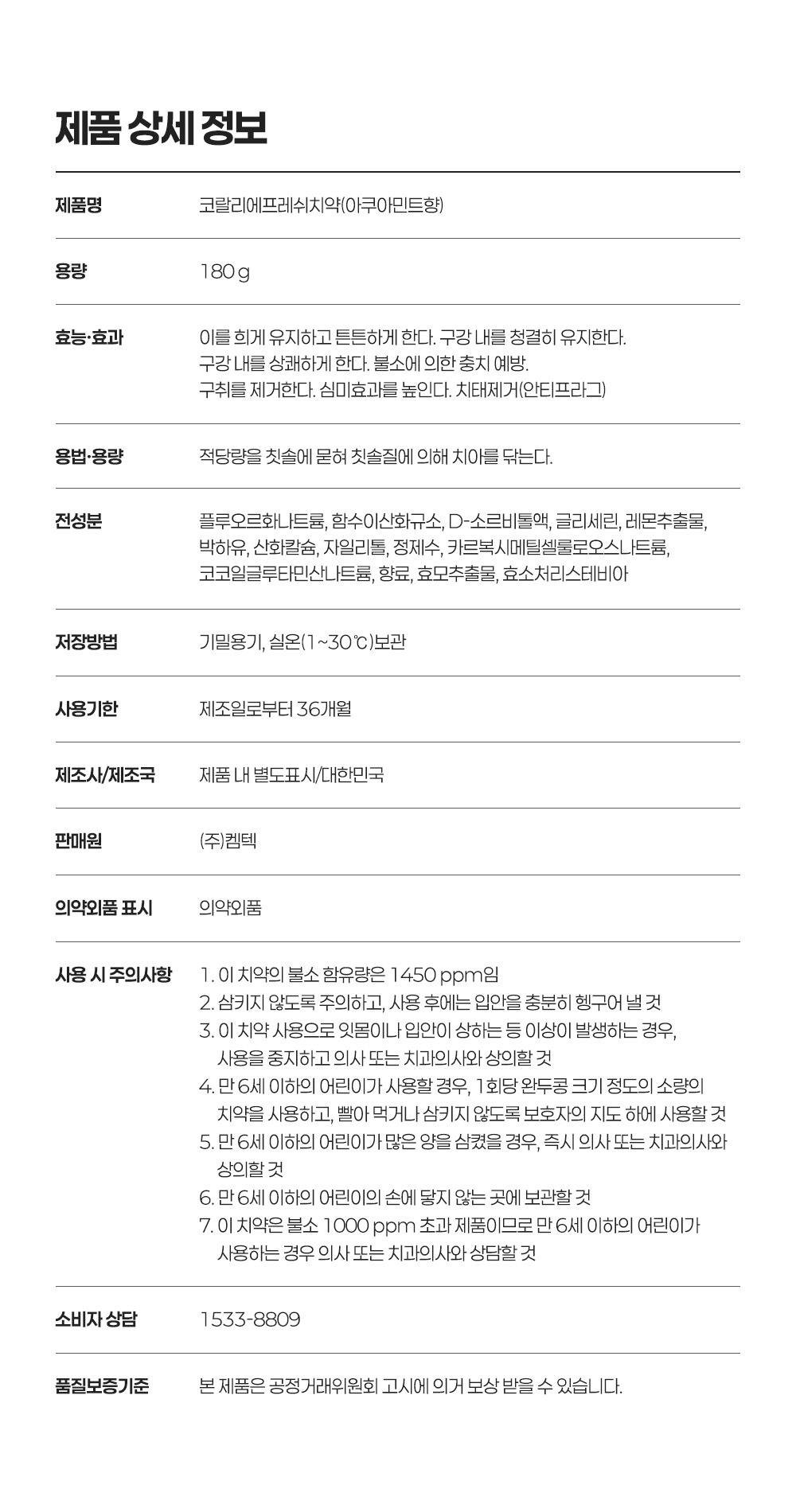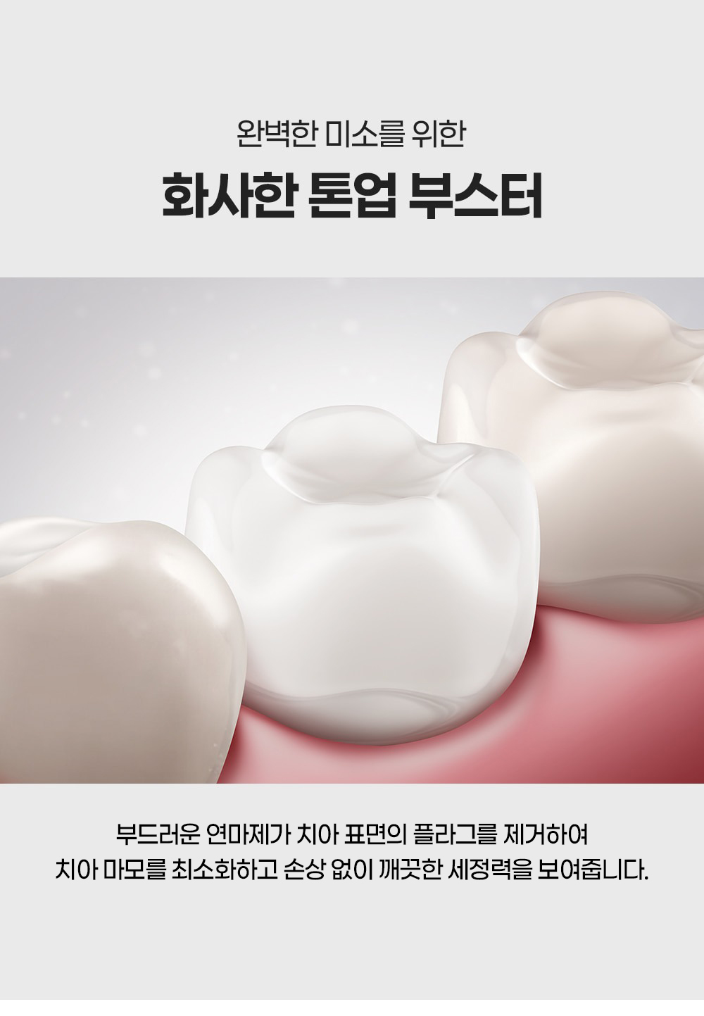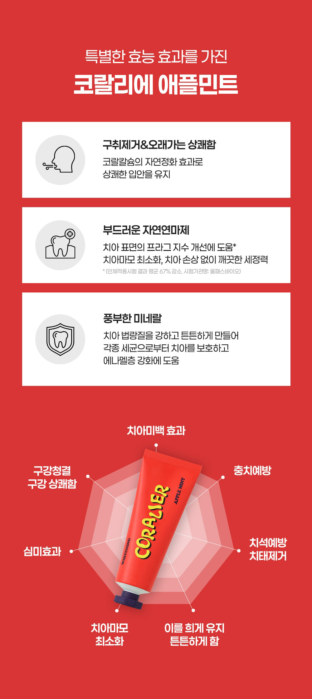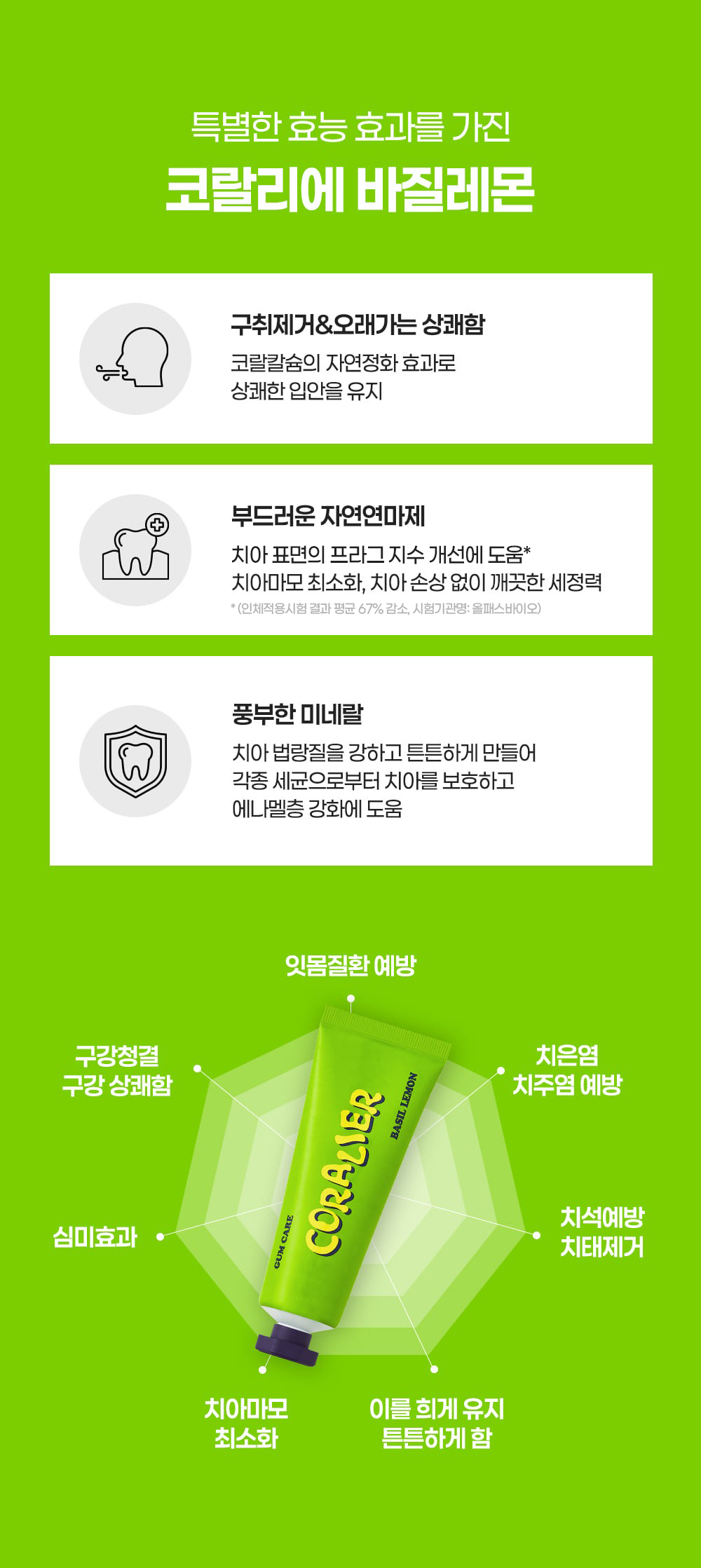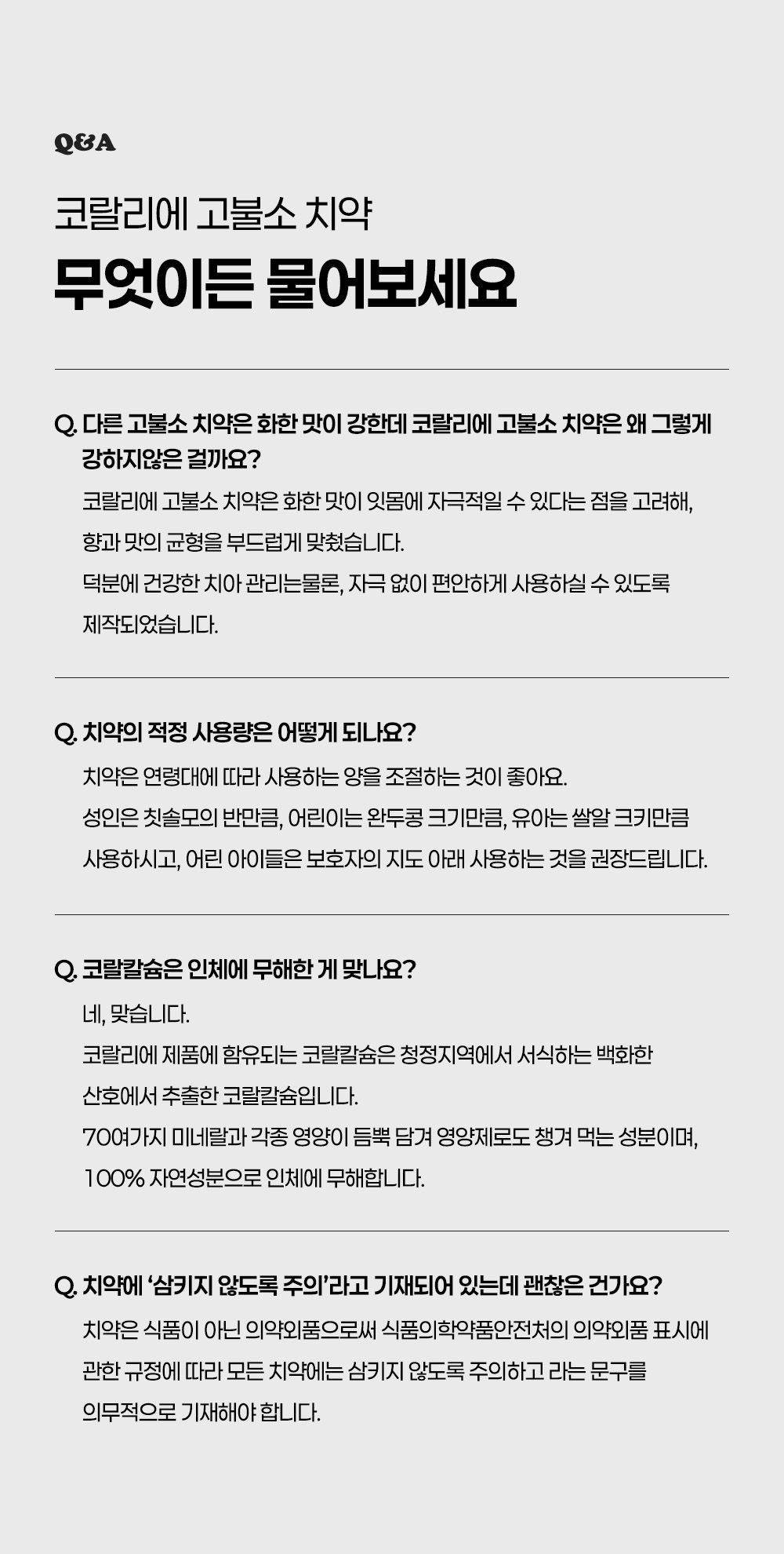 "산호칼슘 70여 미네랄 + 1,450ppm 고불소 정밀한 비율이 만드는 확실한 효과"