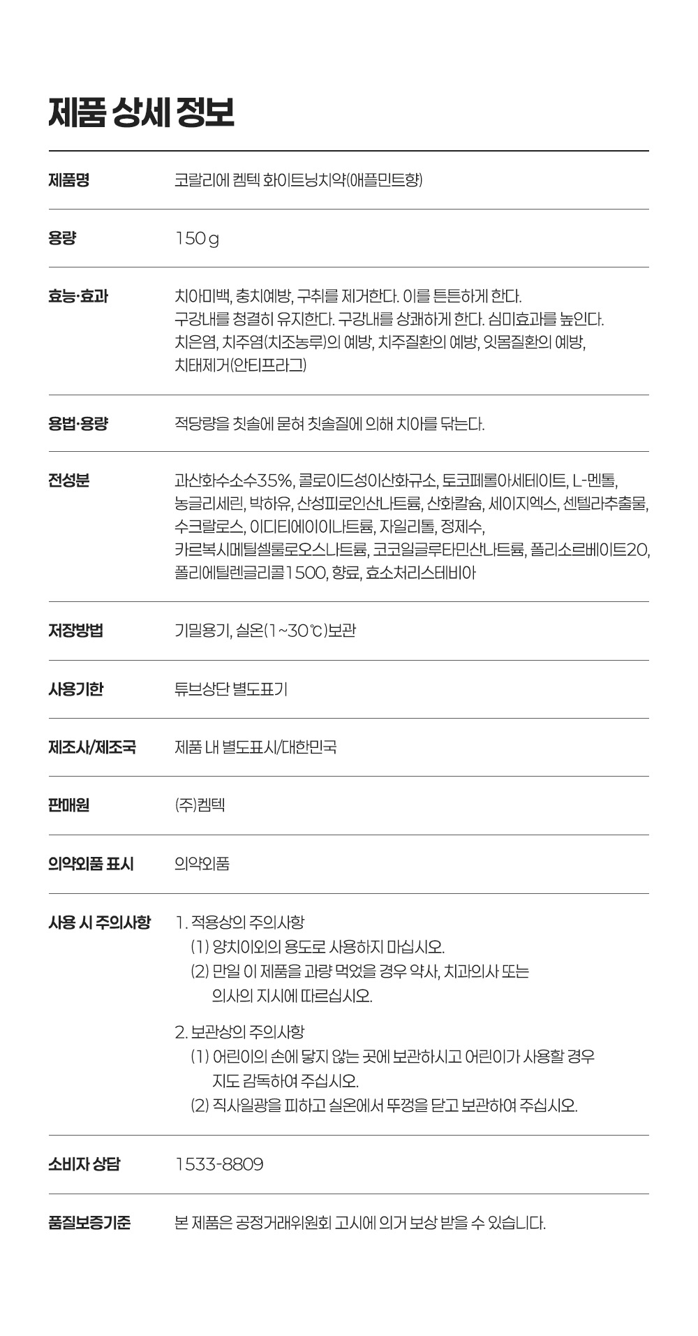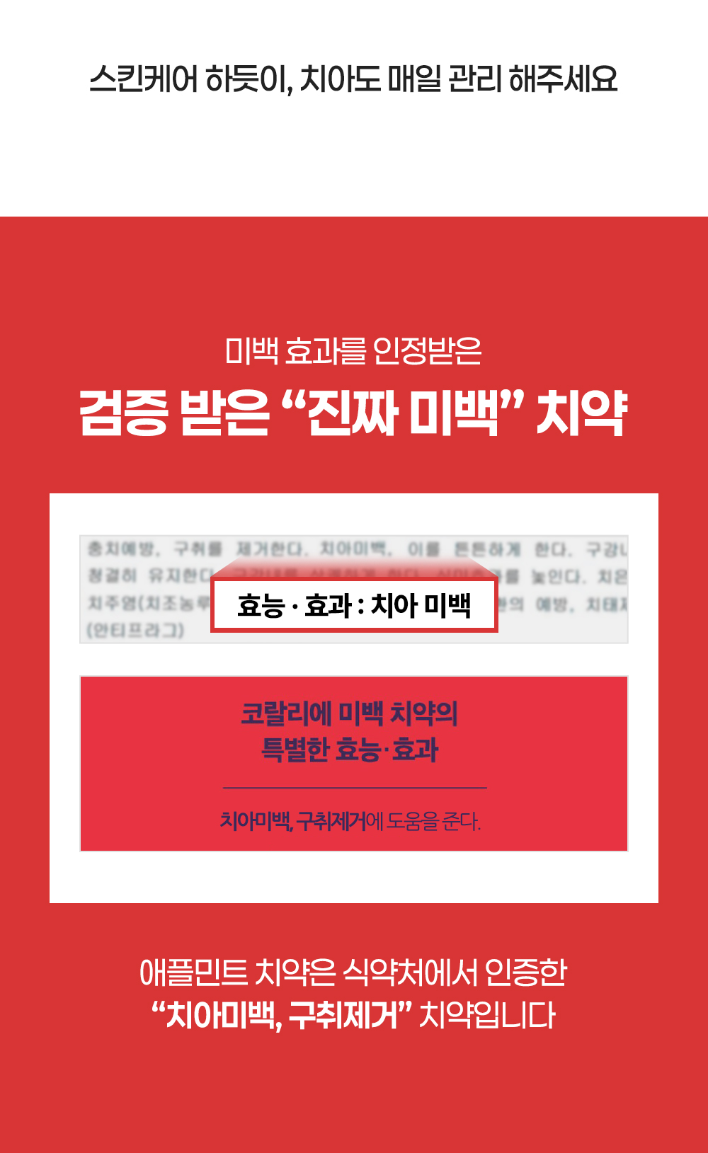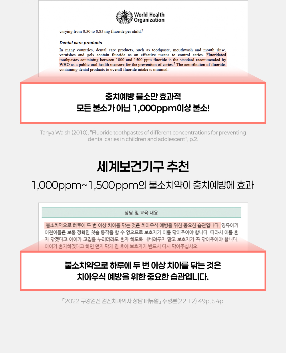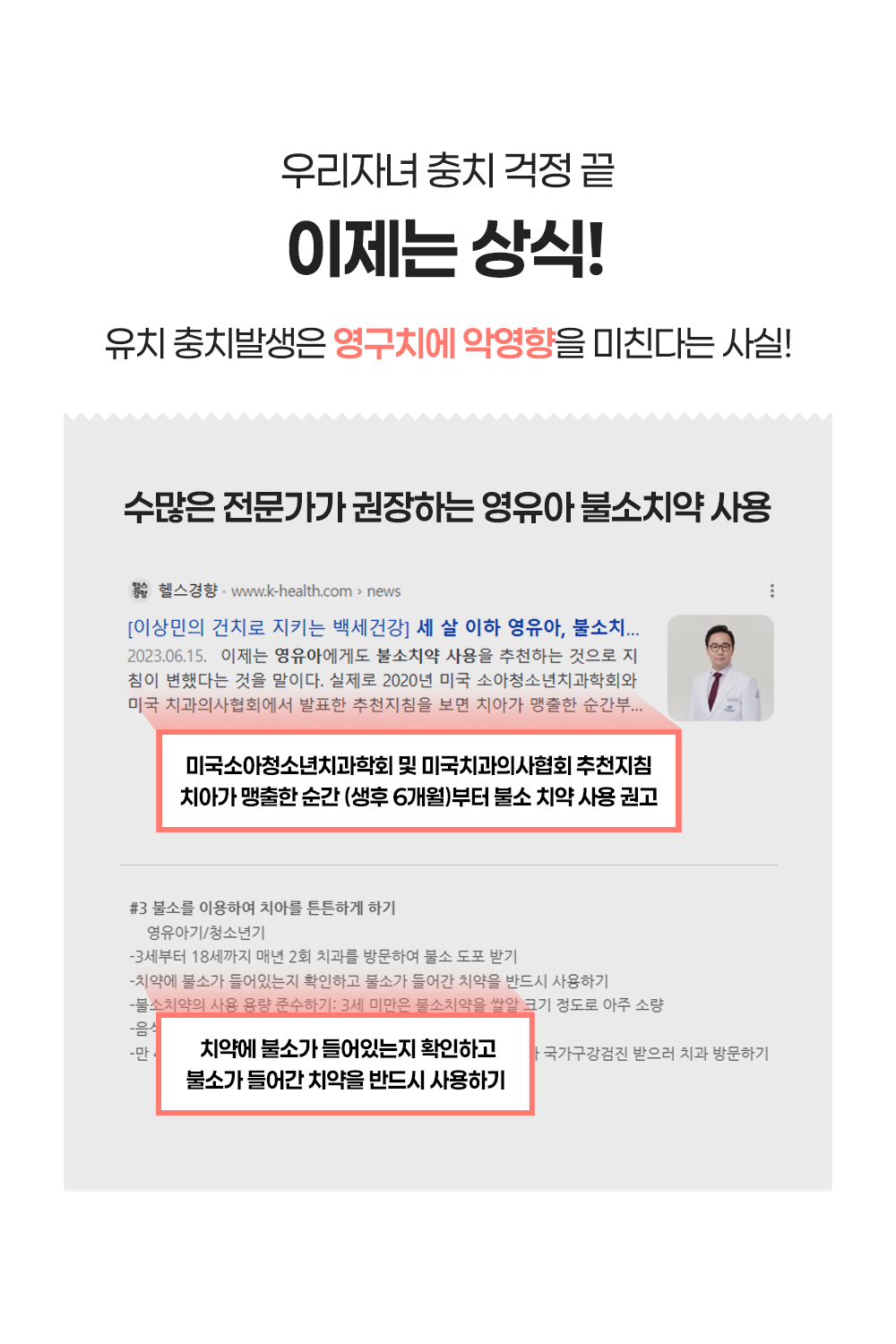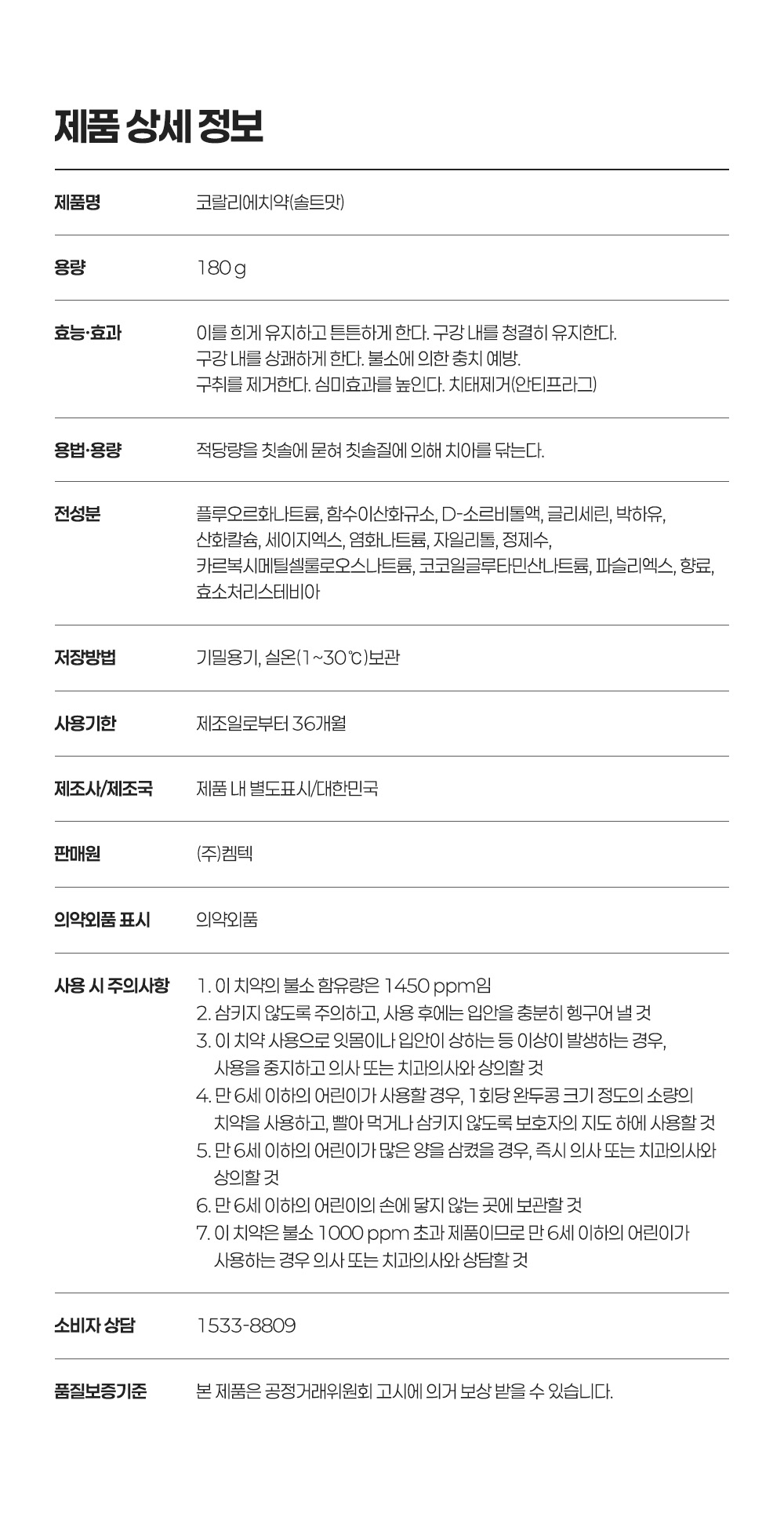 "산호칼슘 70여 미네랄 + 1,450ppm 고불소 정밀한 비율이 만드는 확실한 효과"
