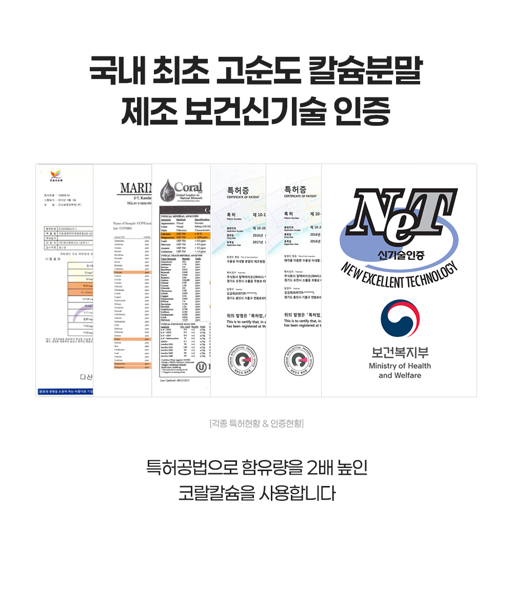 일반 칼슘 대비 월등한 흡수율을 자랑하는 프리미엄 성분입니다.