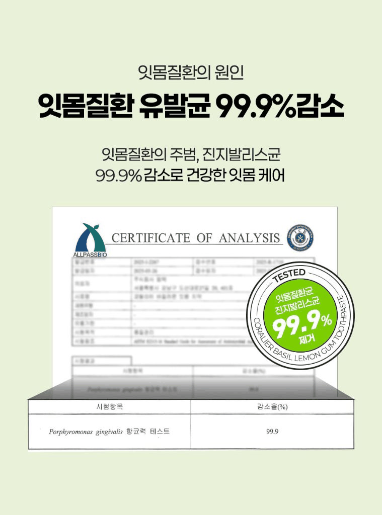 잇몸질환의 주범, 진지발리스균 99.9% 제거 완료