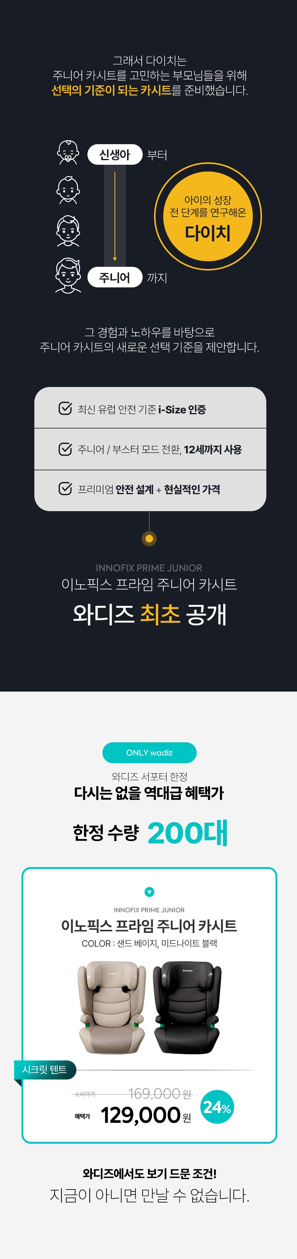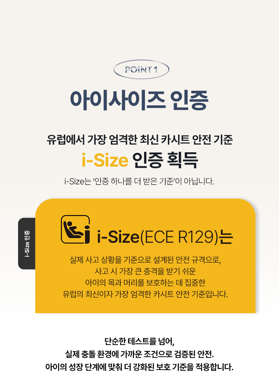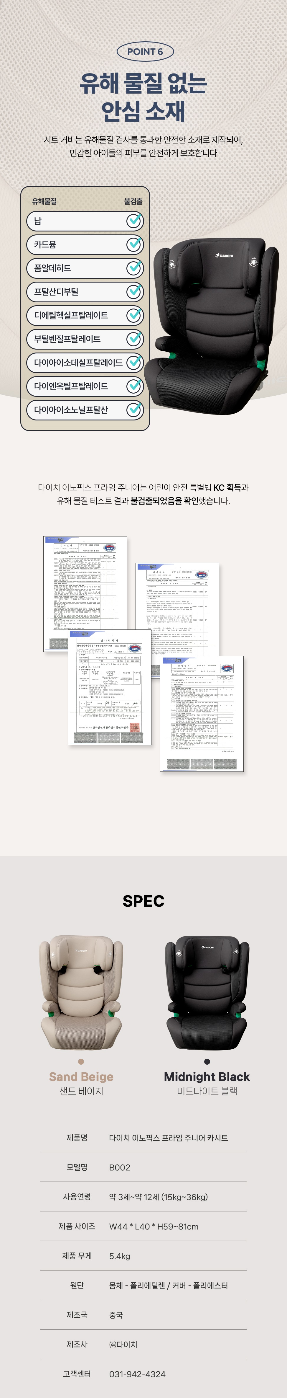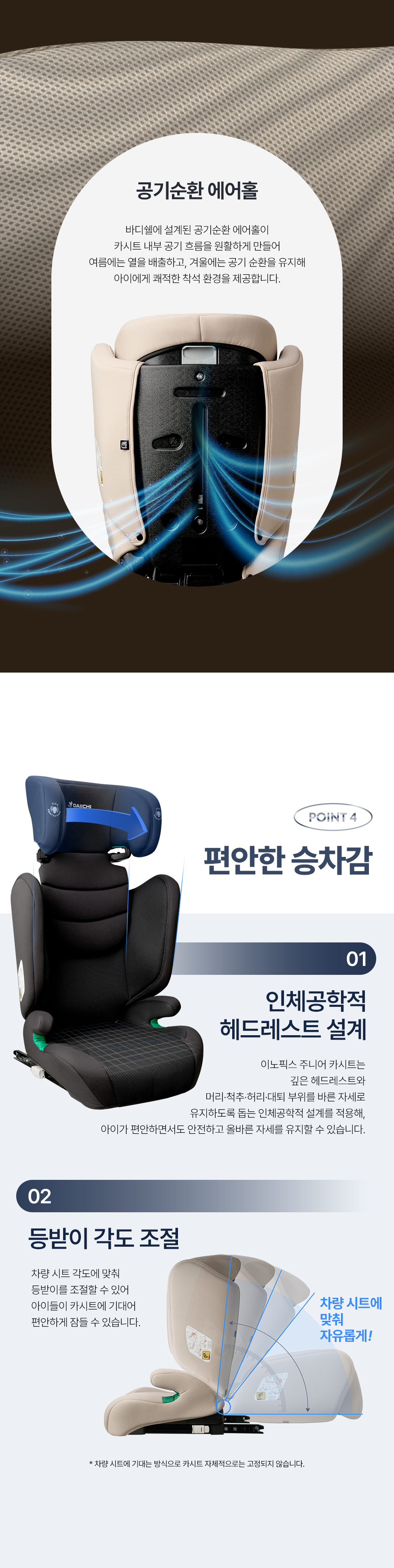 이노픽스 프라임 주니어 카시트는 유럽 i-Size 인증 기준을 적용한 설계로,