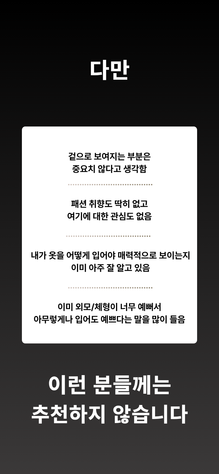 저는 스타일을 추천해줄 때 단순히 트렌드만 보지도 않고,