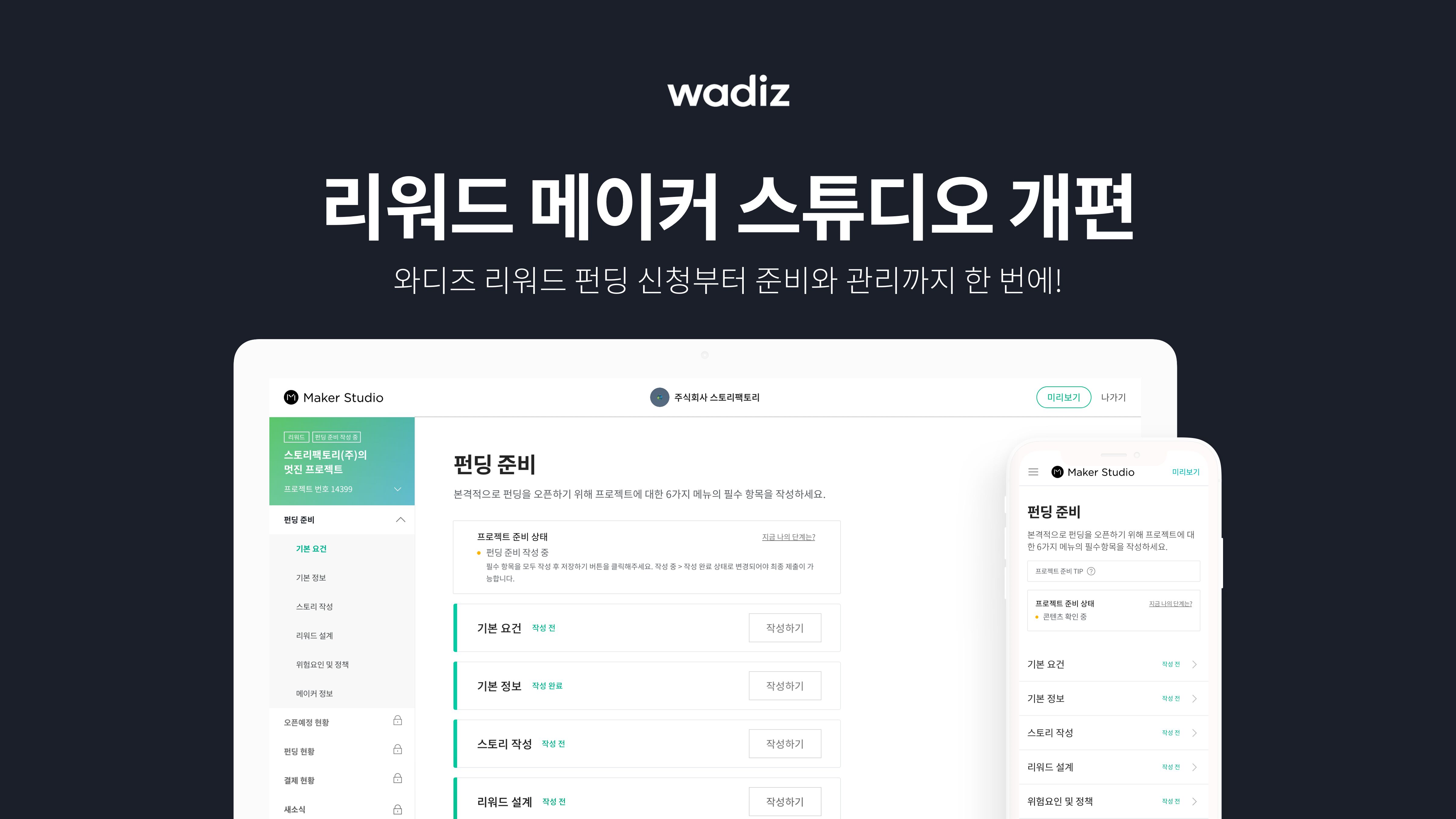 리워드 펀딩을 진행하는 메이커들을 위해 프로젝트를 작성·관리할 수 있는 리워드 메이커 스튜디오 서비스가 2019년 10월 29일에 개편됩니다.