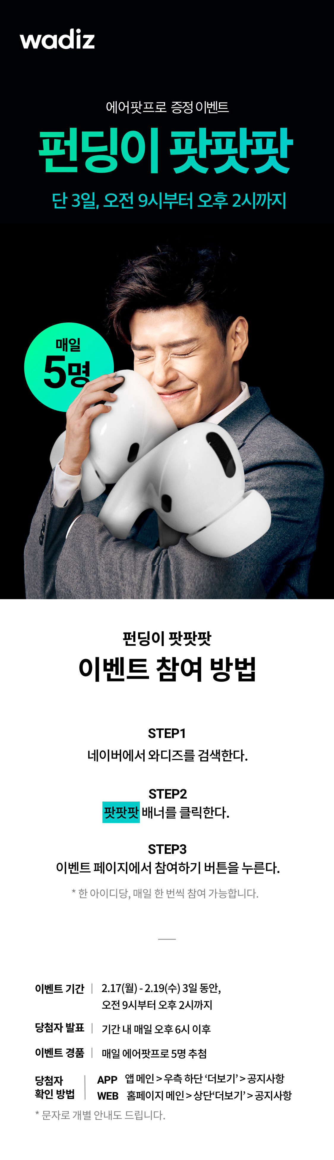 와디즈 회원 경품 이벤트 <펀딩이 팟팟팟>