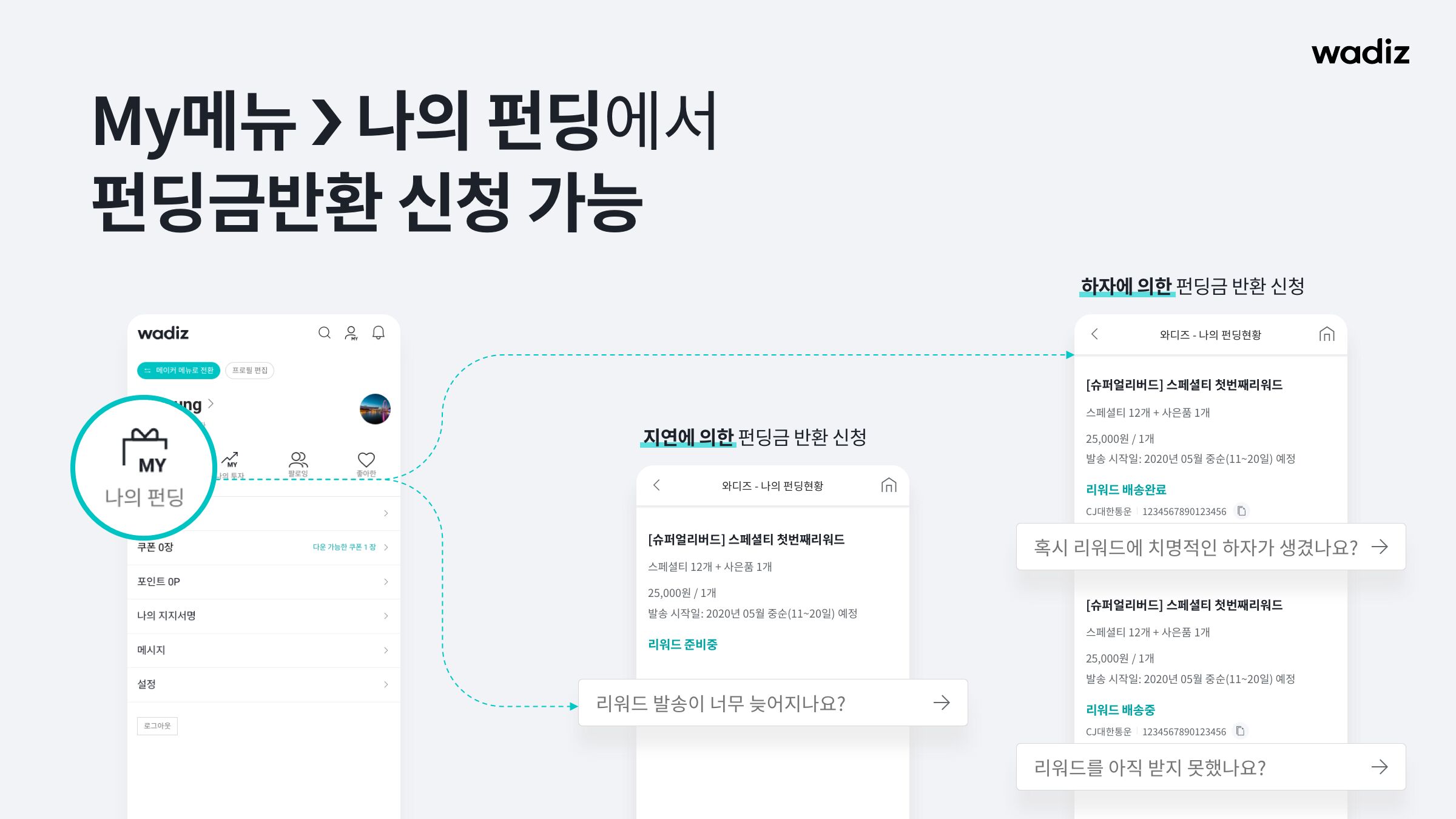 펀딩금 반환 서비스를 통해 신뢰할 수 있는 와디즈가 될 수 있도록 꾸준히 서비스를 보완하며 개선해나가겠습니다.