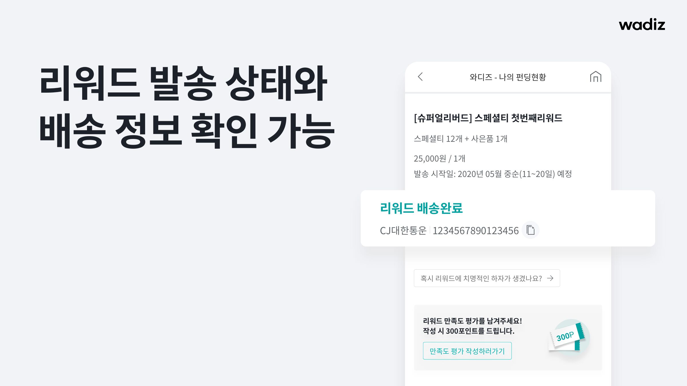 리워드 발송 상태와 배송정보도 확인해보세요!