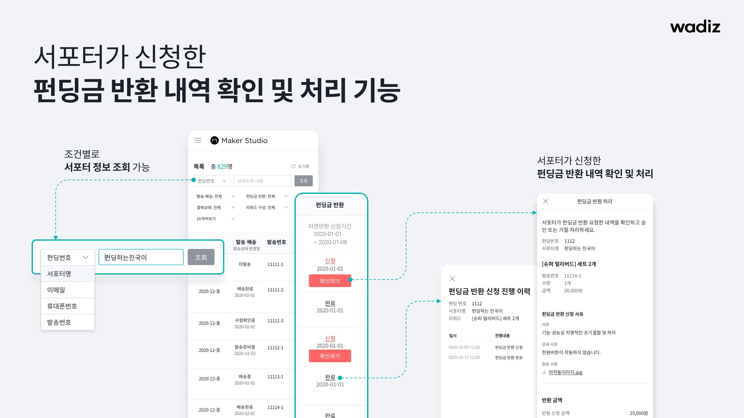 서포터가 신청한 펀딩금 반환 내역을 직접 확인하고, 처리할 수 있는 기능이 추가되었습니다.