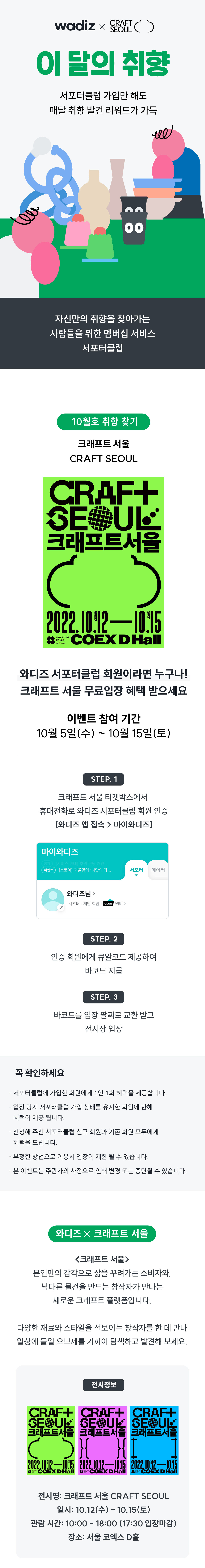 [이벤트] 와디즈 X 크래프트 서울ㅣ서포터클럽 회원 모두에게 무료입장 혜택!