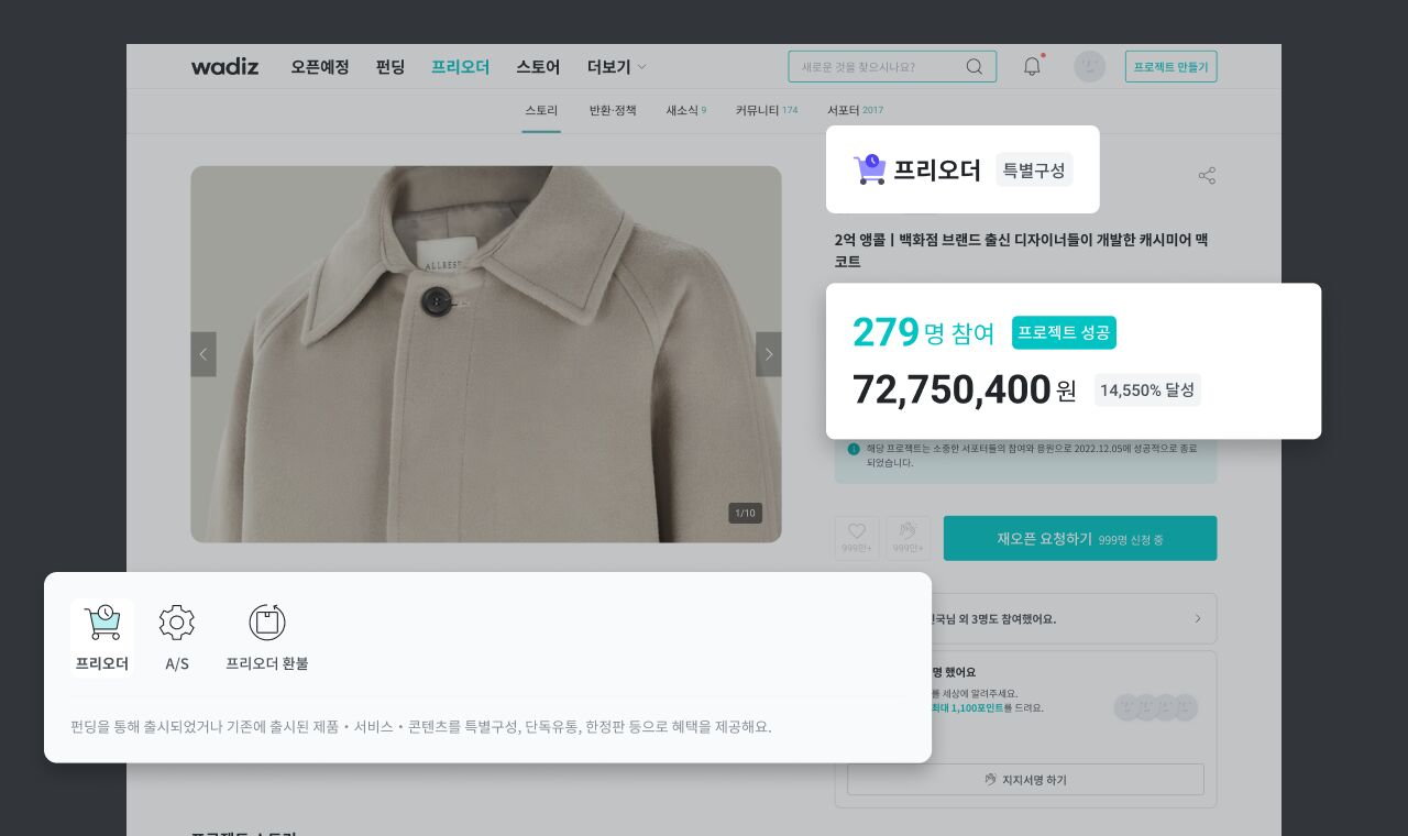 와디즈에서 누구나 도전할 수 있도록 프리오더 서비스가 리뉴얼됩니다.