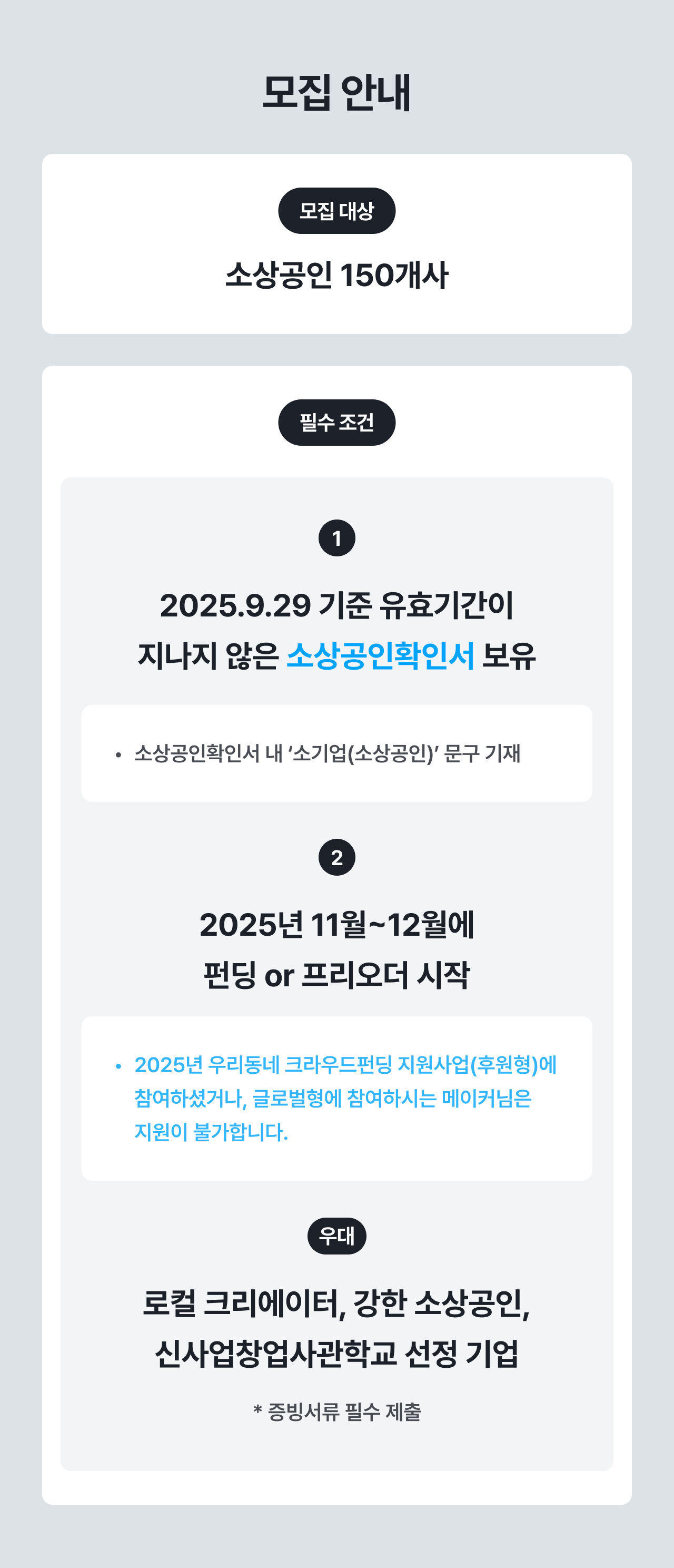 [지원사업] 우리동네 크라우드펀딩 지원사업(하반기) 메이커 모집(~10/24(금))