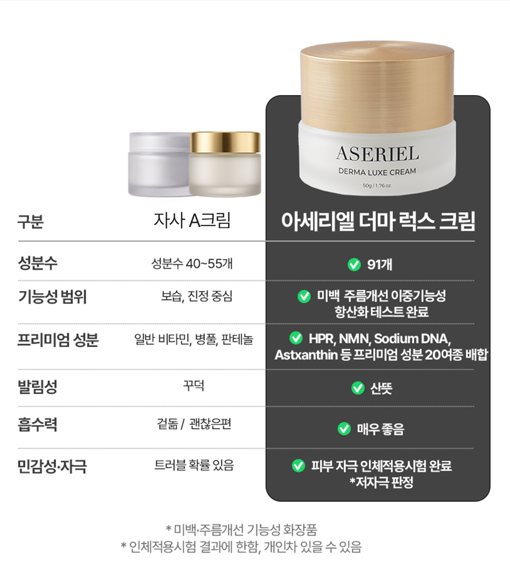 피부 고민이 많아질수록 루틴은 길어지기 쉽지만, 바쁜 일상에서는 오히려 단순하고 꾸준한 루틴이 더 중요하다고 생각했습니다. 아세리엘 크림은 프리미엄 성분 함유로 건조, 탄력 저하, 주름 및 기미 등 피부고민을 올인원 케어하는 방향으로 중심을 두었습니다.