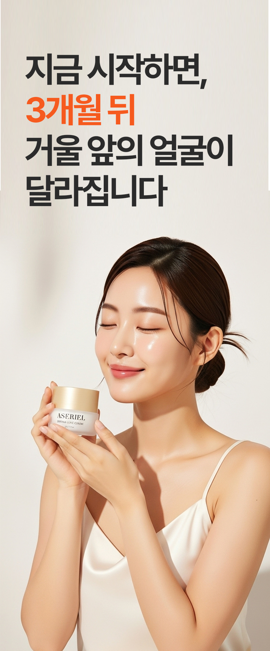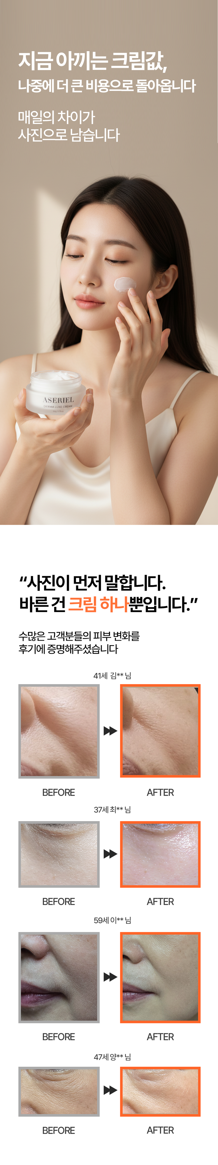 둘째, 복잡한 단계를 줄이고 아세리엘 크림 하나로 보습과 탄력, 데일리 피부 관리 루틴까지 이어지는 올인원 케어를 제안할 것