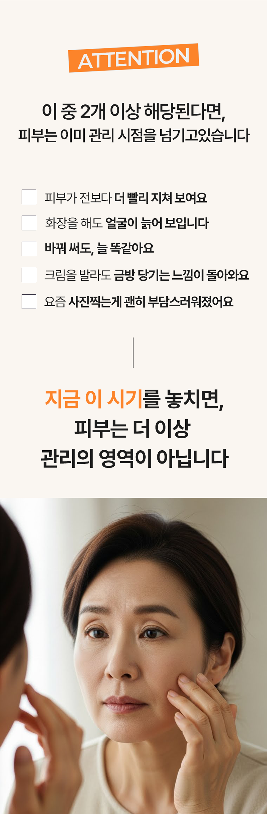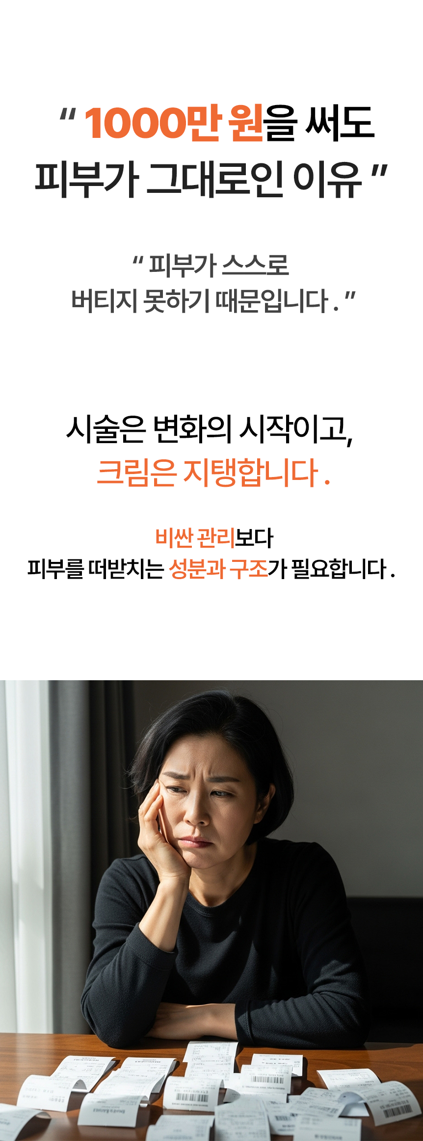 첫째, 피부과에 자주 가지 못하는 바쁜 30~50대 여성들의 현실적인 피부 고민을 담을 것