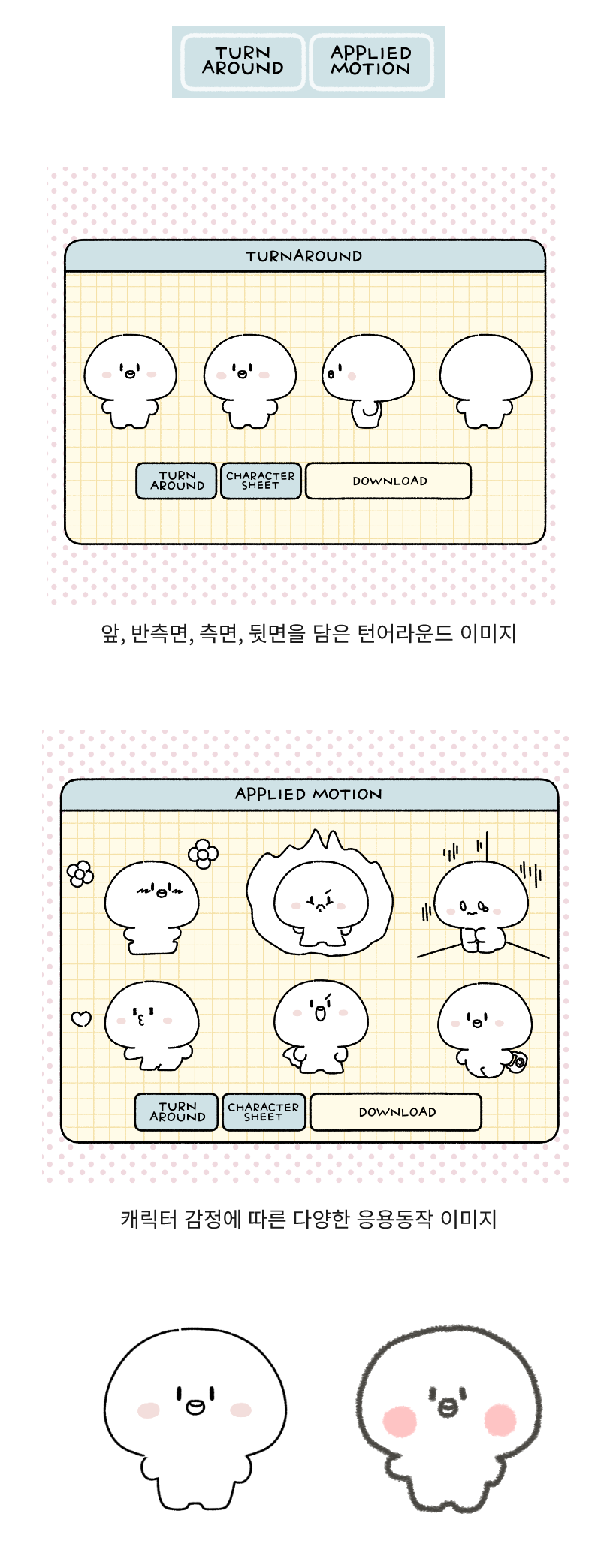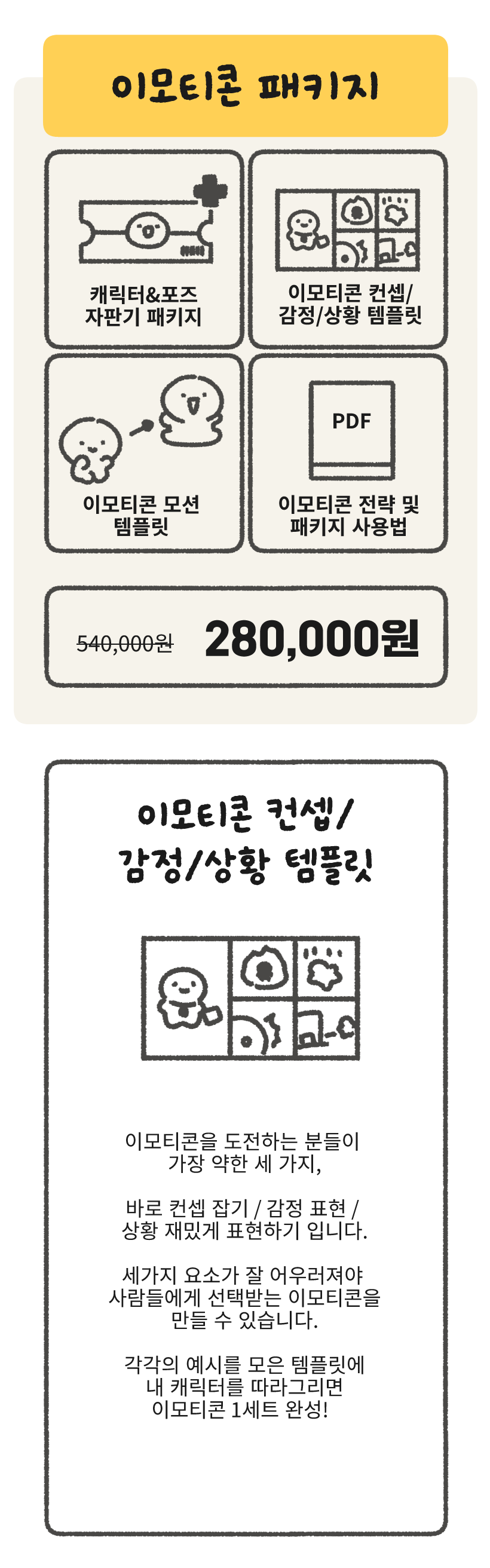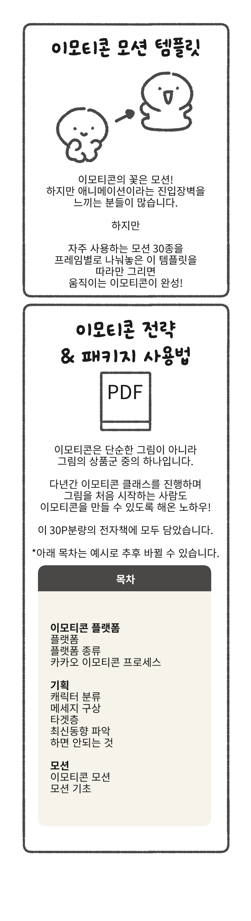 카카오 이모티콘 비율 및 간단한 동작 콘티로
