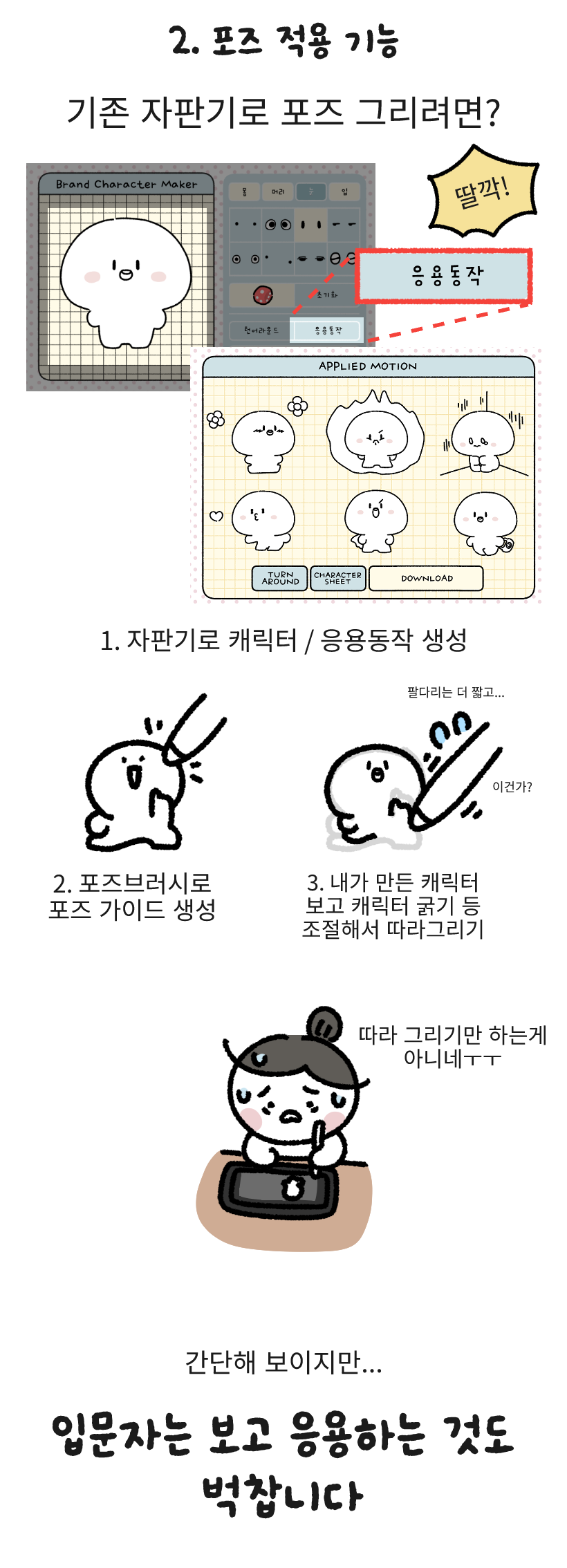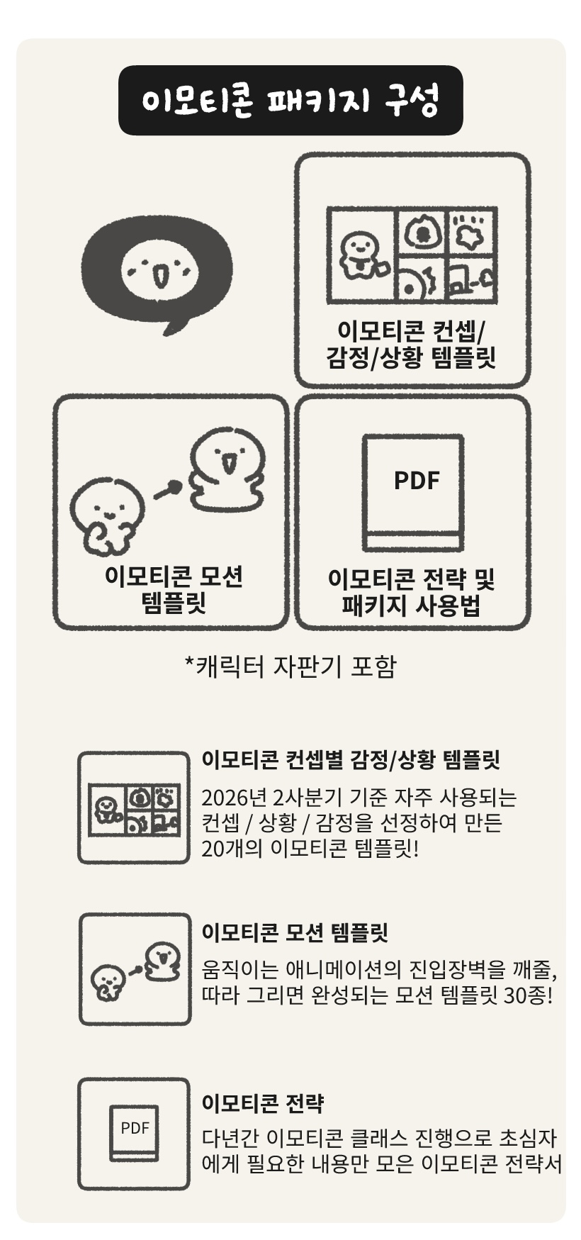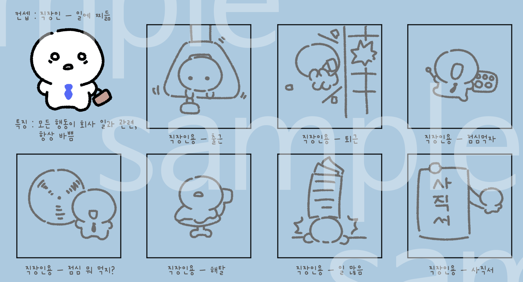 카카오 이모티콘 비율 및 간단한 동작 콘티로
