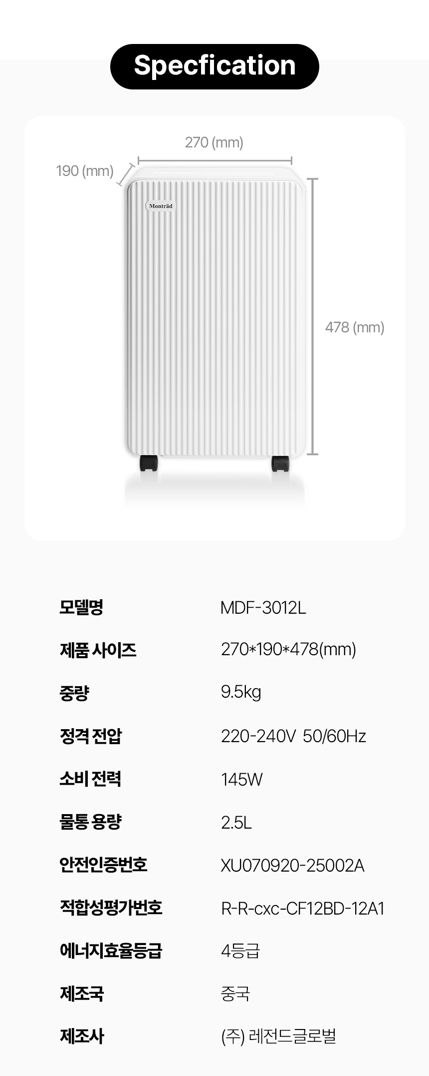 강력한 컴프레셔 기술로 뛰어난 제습 능력