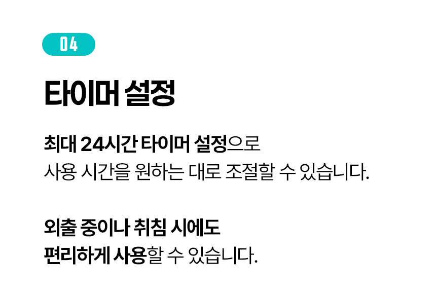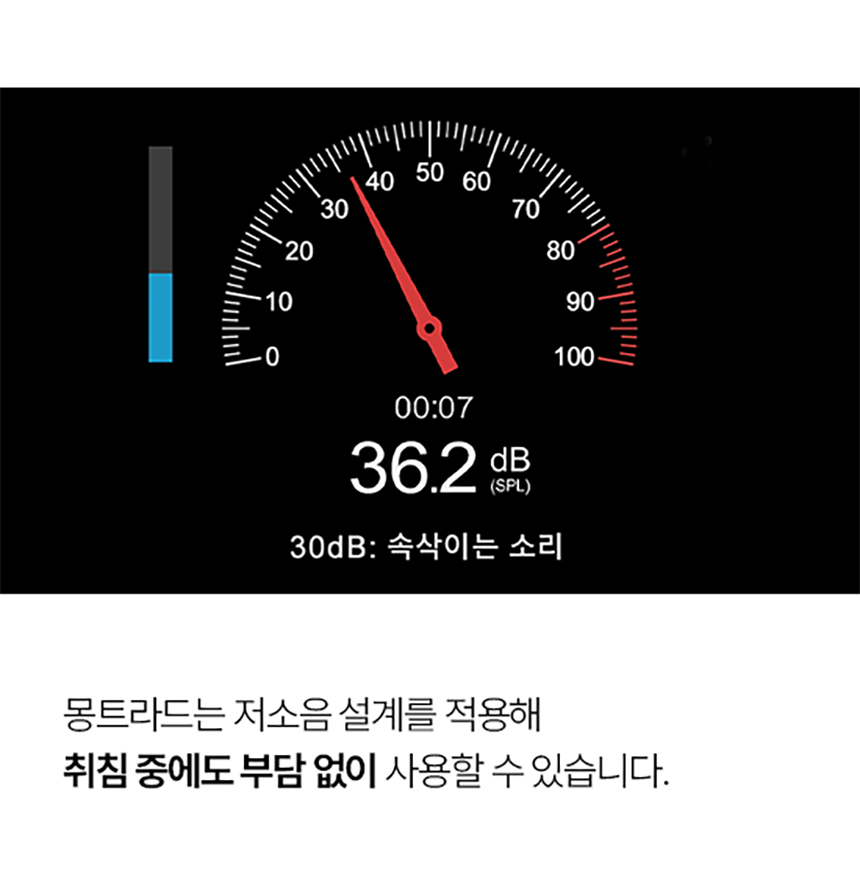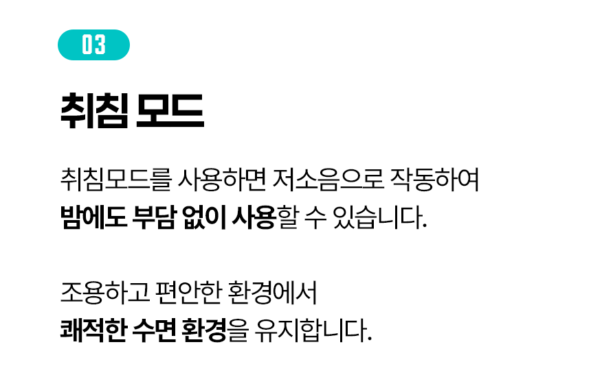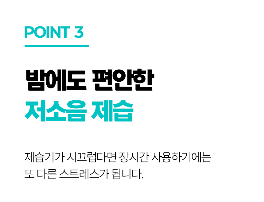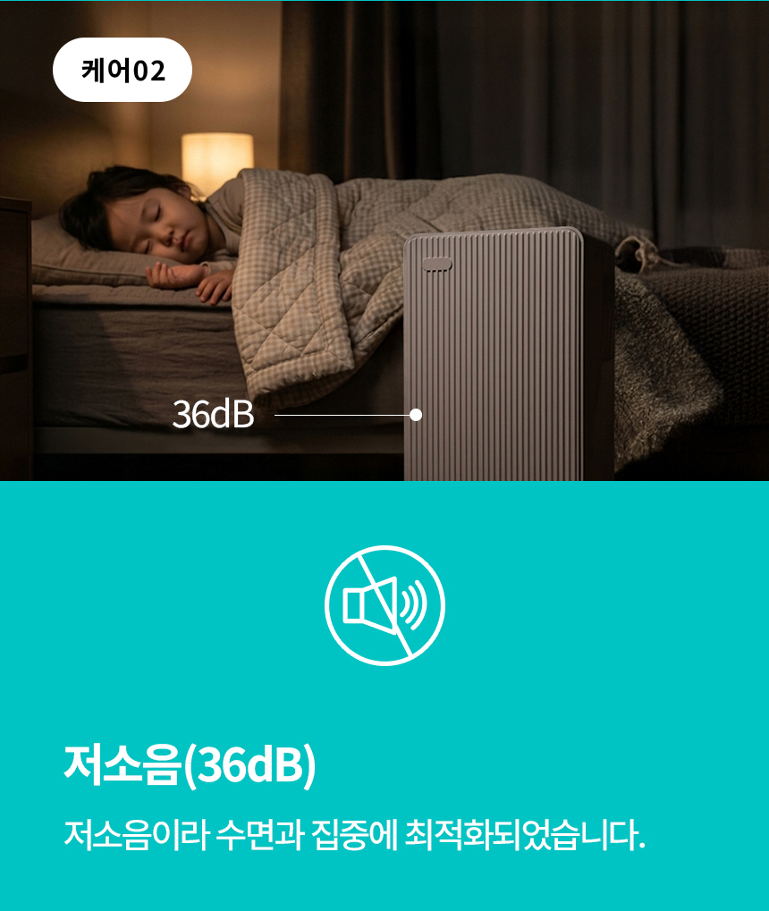 침실에서도 사용할 수 있도록 저소음 환경을 고려했습니다.