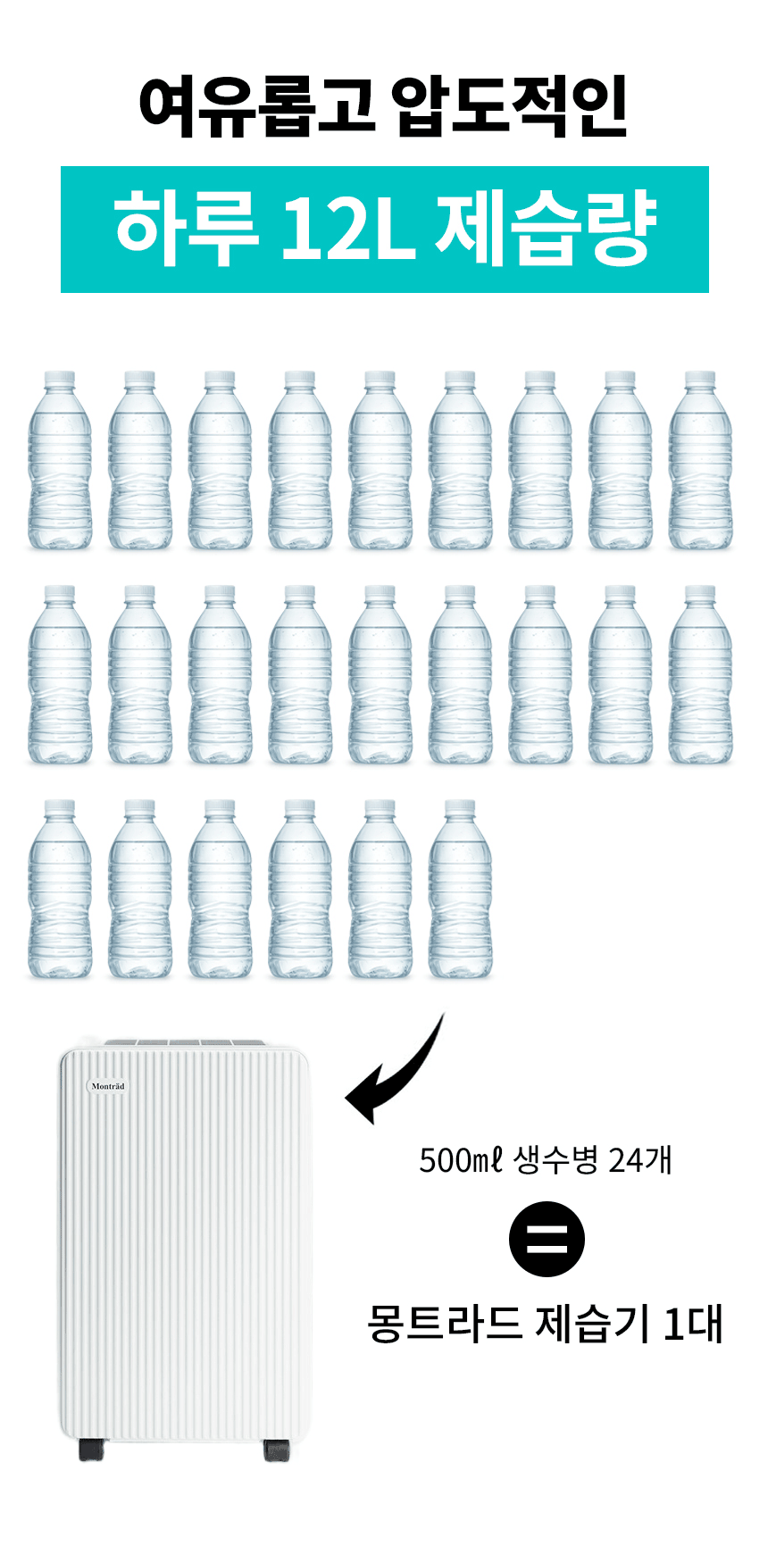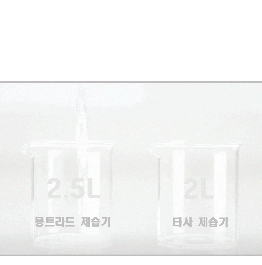 A. 습도와 환경에 따라 차이가 있으나 타사 제습기 대비 0.5L 이상 높은 물통을 사용해 더 쾌적한 환경을 조성할 수 있도록 설계하였습니다.