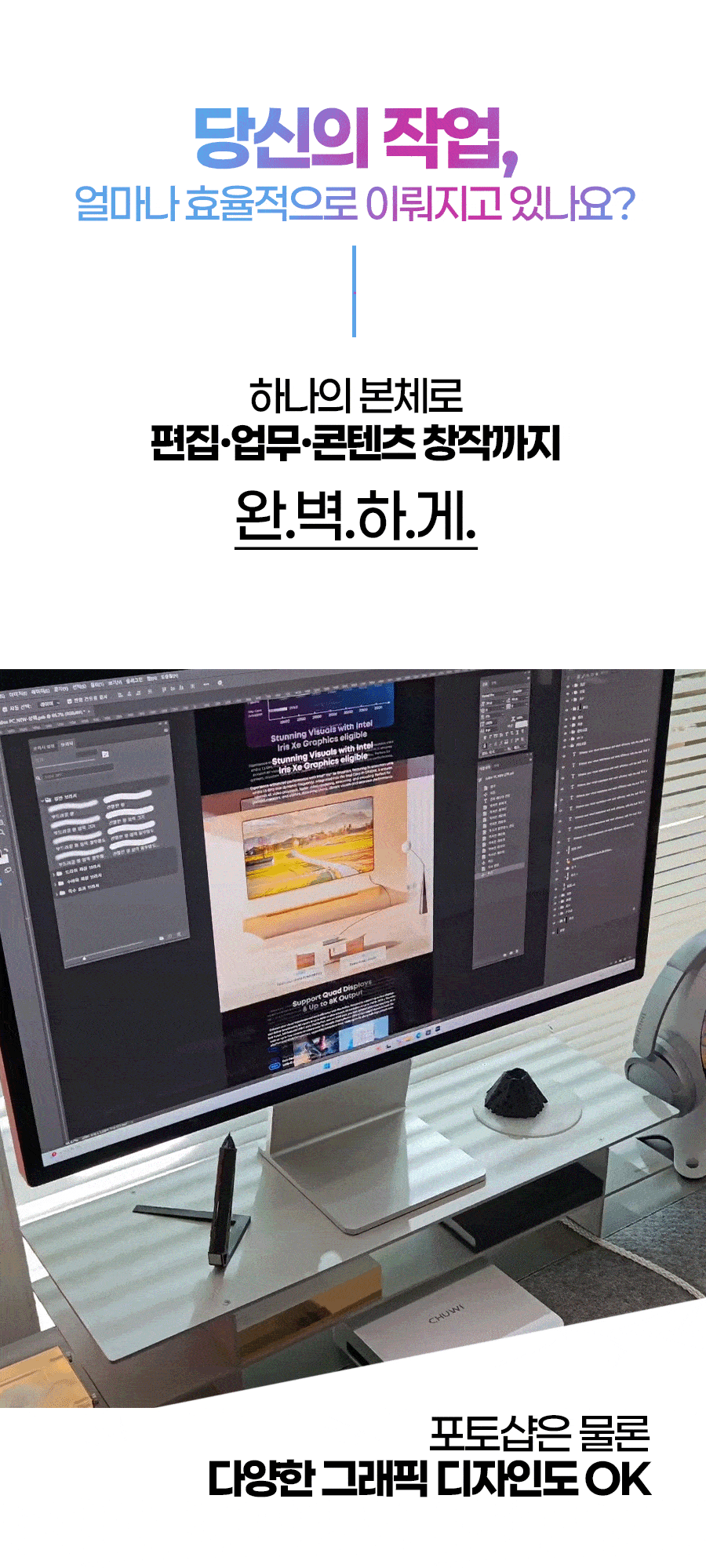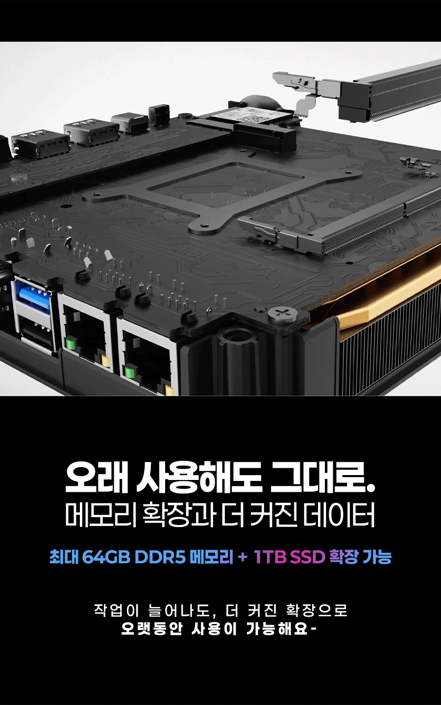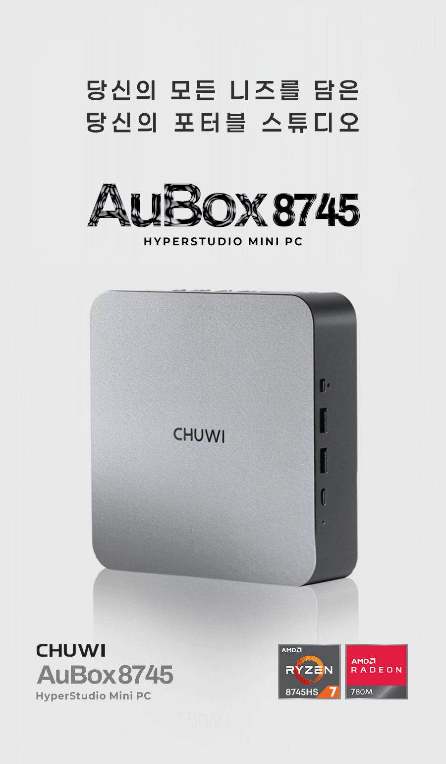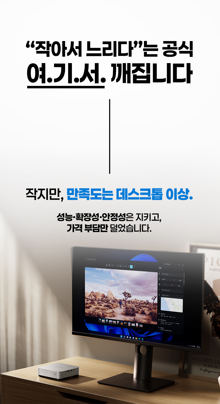 1. 💻 Ryzen 7 탑재 고성능 미니PC - 8코어 CPU와 고성능 내장그래픽으로 데스크탑 성능 구현 2. 📏 컴팩트한 공간 활용 - 데스크탑 대비 1/40 크기, 740g 초경량 디자인 3. 🎁 와디즈 단독 특별 할인 - 울트라 얼리버드 등 다양한 할인 혜택 제공