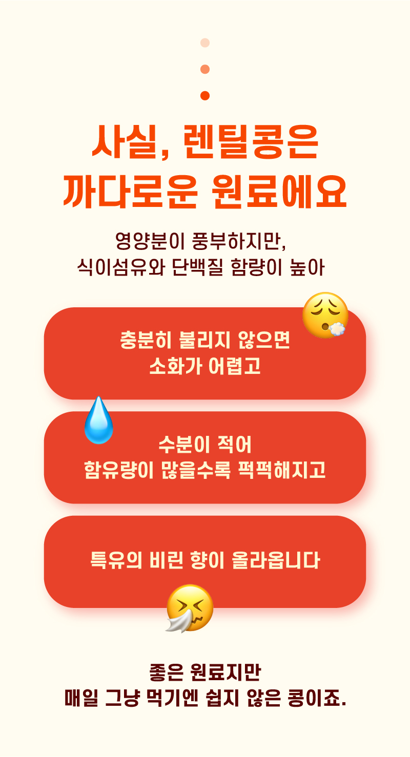 영양성분은 놀라울 만큼 탄탄했지만 문제는‘맛’이었습니다. 퍼석한 식감, 조리의 번거로움…. 매일 먹기엔 부담스러웠습니다.