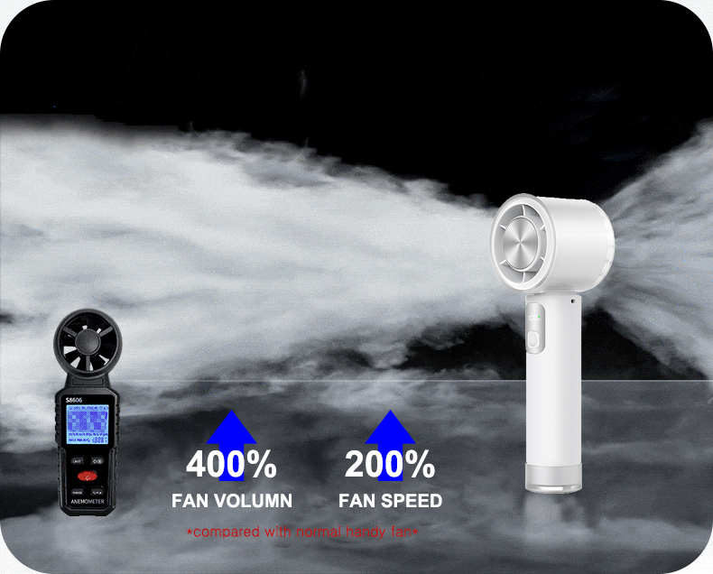 우리는 단순히 바람을 내보내는 것이 아니라, 진짜 시원함을 전달하는 것을 목표로 했습니다.이 제품은 일반 핸디 선풍기 대비 400% 향상된 풍량과 200% 강화된 풍속을 자랑합니다.