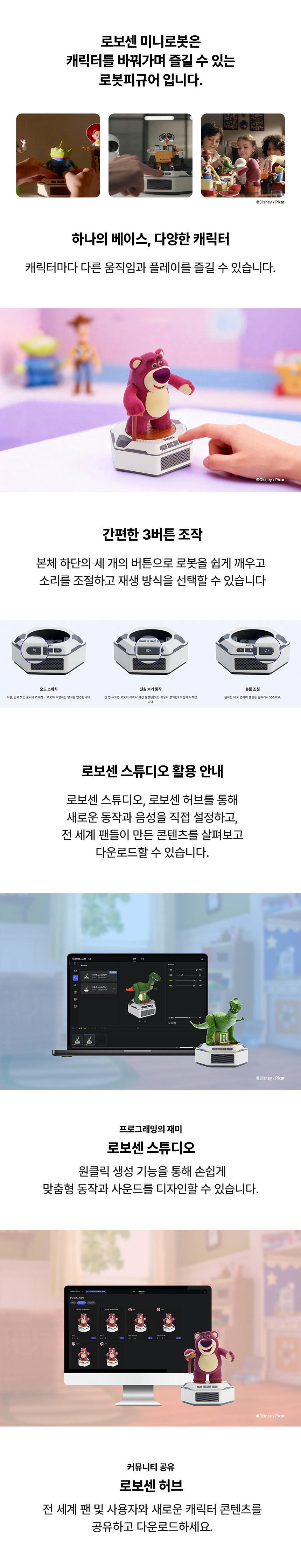 픽사의 정식 라이선스를 받은 ‘로보센(Robosen)’은 애니메이션 속 캐릭터들의 디테일한 표현력에 로봇 기술을 더해, 정말 살아있는 것 같은 피규어를 구현했습니다!