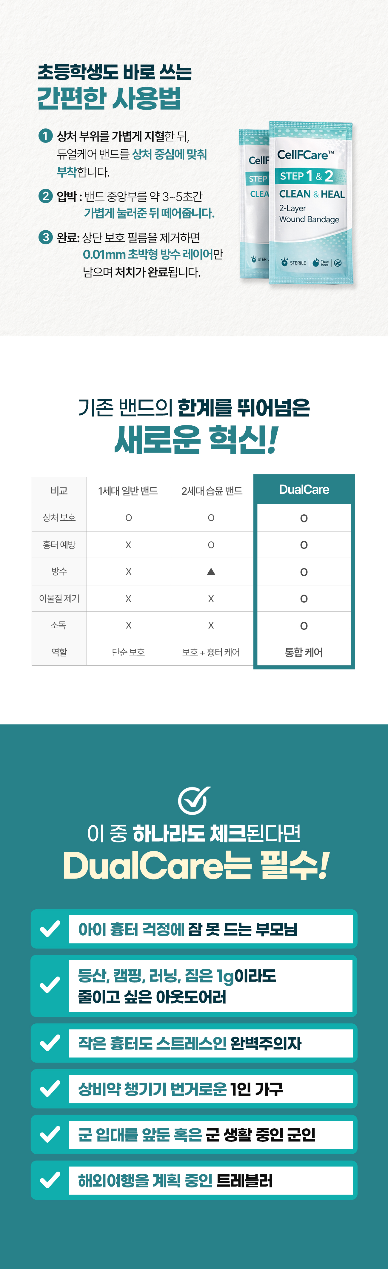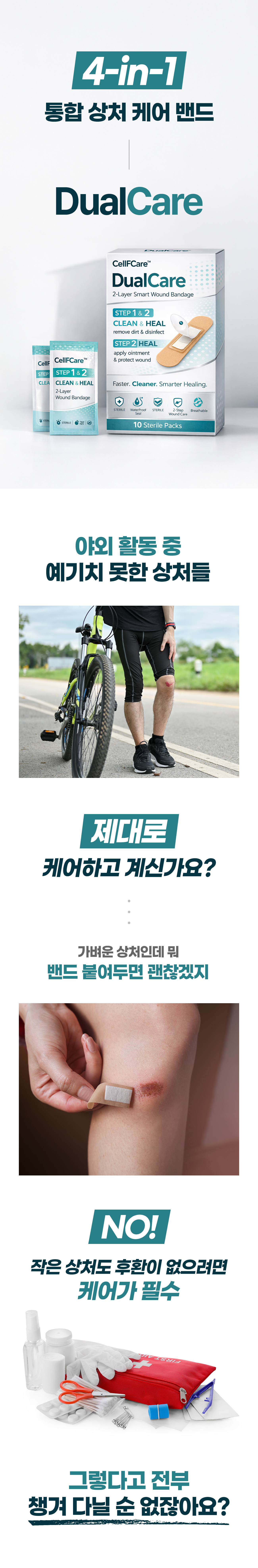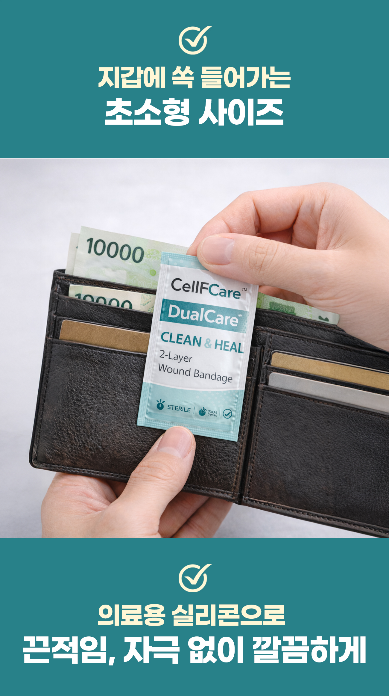 저희는 이 6단계의 번거로움을 단 한 장의 밴드에 집약했습니다. 이번 펀딩을 통해 "세척과 소독이 동시에 되는 2-Layer 밴드"의 시장 가치를 검증하고, 많은 서포터분의 피드백을 바탕으로 대한민국 응급 키트의 표준을 바꾸고 싶습니다.