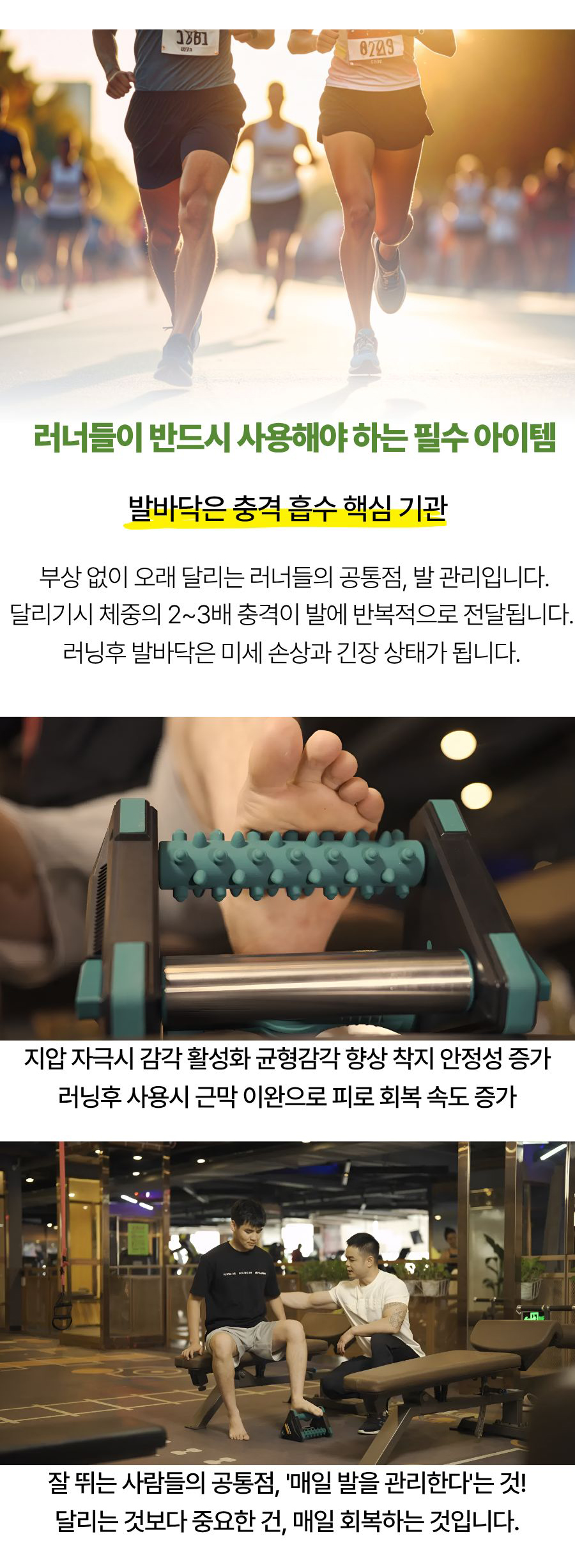 발 피로를 해결하고 싶은 메이커입니다.저 역시 운동을 꾸준히 하면서발 통증 때문에 쉬어본 경험이 있습니다.그때 느꼈습니다. “운동보다 중요한 건 회복이다”그래서 직접 여러 제품을 비교하고 실제 사용하면서 개선점을 찾고가장 실용적인 형태를 선택했습니다이 프로젝트는 단순 판매가 아니라운동을 오래 지속할 수 있게 돕는 것이 목표입니다.