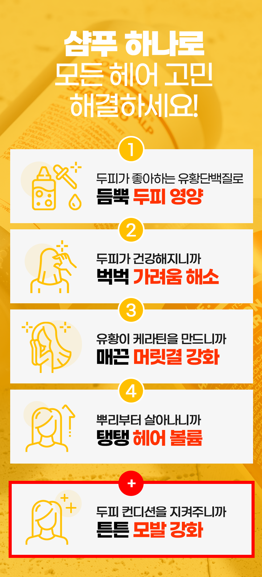 일반 유황온천은 1L당 1g 정도의 유황이 함유 되어있습니다. 그에 반해 쏘두위 유황단백질 폭탄두피밥 샴푸에는 고농도 특허받은 복합유황이 함유되어 있어 두피에 더 깊은 유황 온천을 경험하실 수 있습니다.