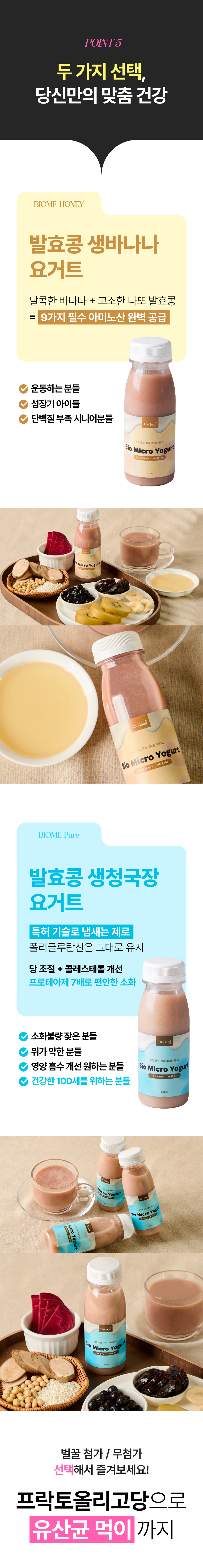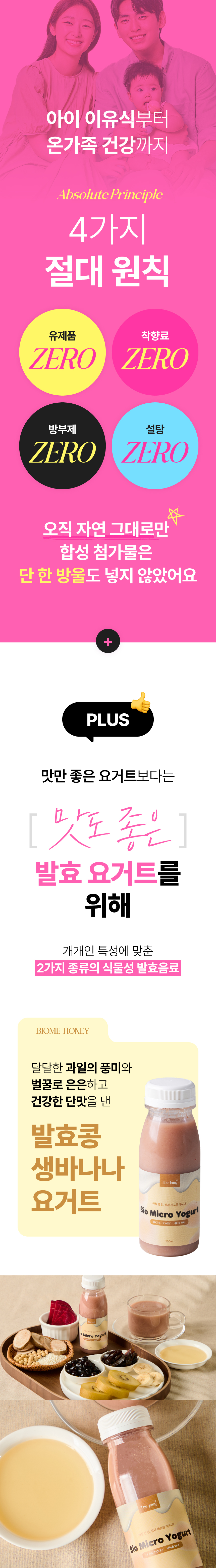 답은 자연에 있었습니다. 식물에서 얻는 유산균과 자연 발효로 우유 대신 식물 원료로, 인공 첨가물 대신 과일로 만든 바이옴 요거트가 스스로 회복하는 힘을 키워 건강하고 아름다운 삶이라고 믿습니다.