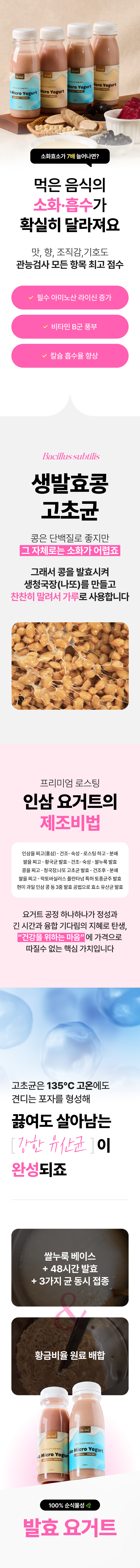 1) 바이오 마이크로 요거트는 무엇이 다르나요? (로스팅홍삼 + 생청국장 + 쌀누룩 발효 = 3중 발효시스템)
