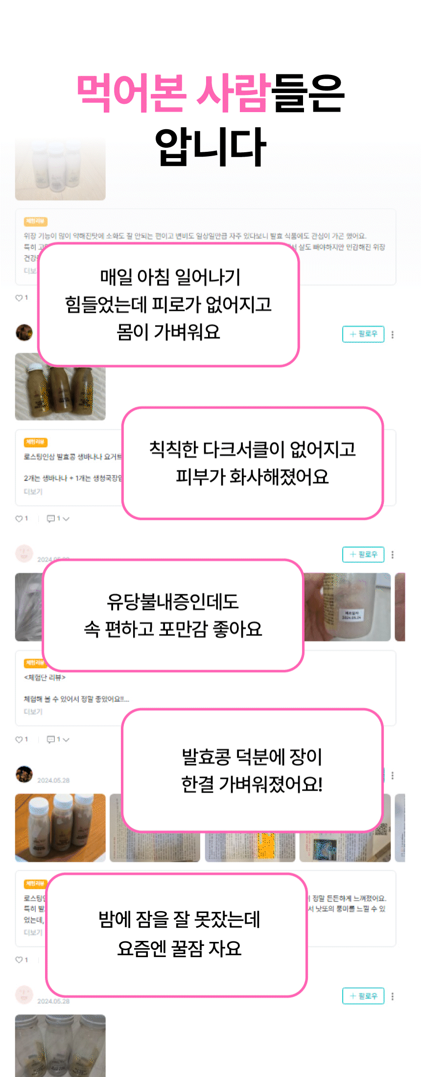 - 포스트바이오틱스 (결과물): 발효로 생긴 좋은 성분들이 장을 치유합니다.