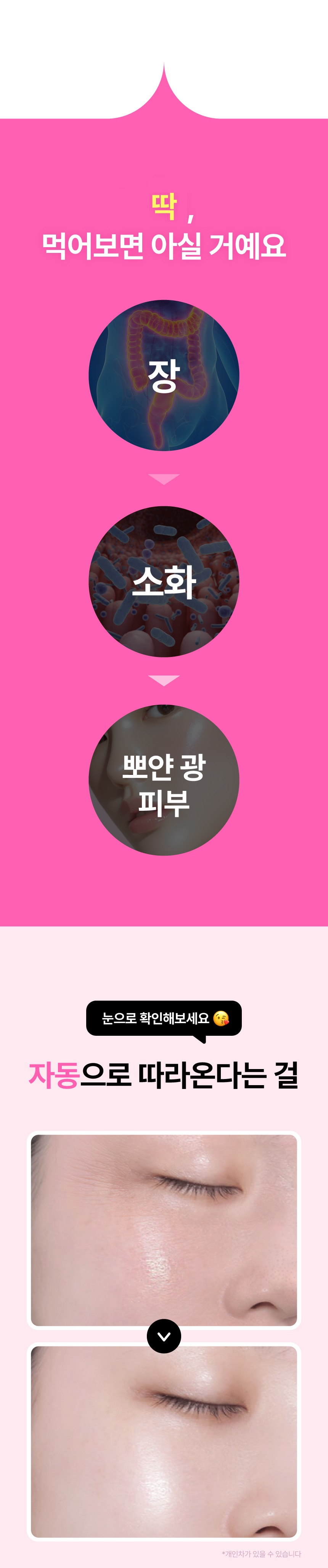 - 유산균 & 비피더스균: 소장과 대장에서 나쁜 균을 억제하고, 배변이 이뤄져 더부룩하지 않습니다.