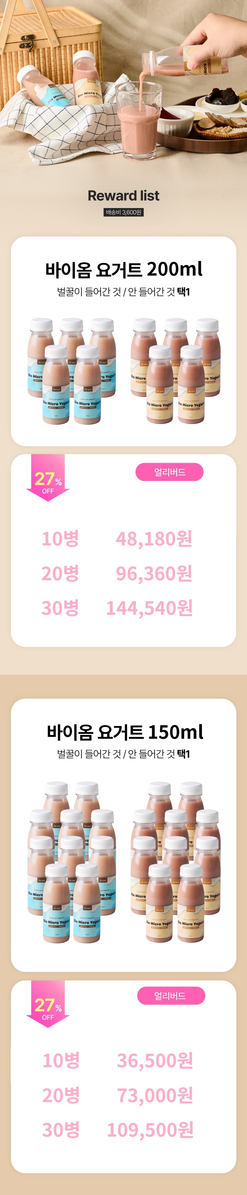 - 바이옴 요거트는 ‘우유 없이’ 식물 원료에 토종 유산균을 발효한 효소가득 마시는 요거트입니다.