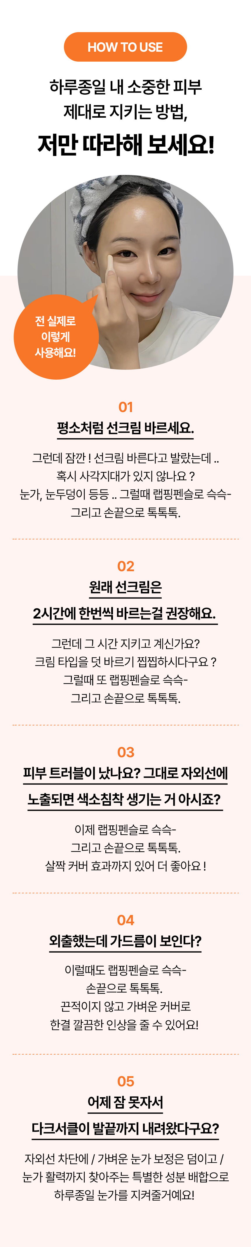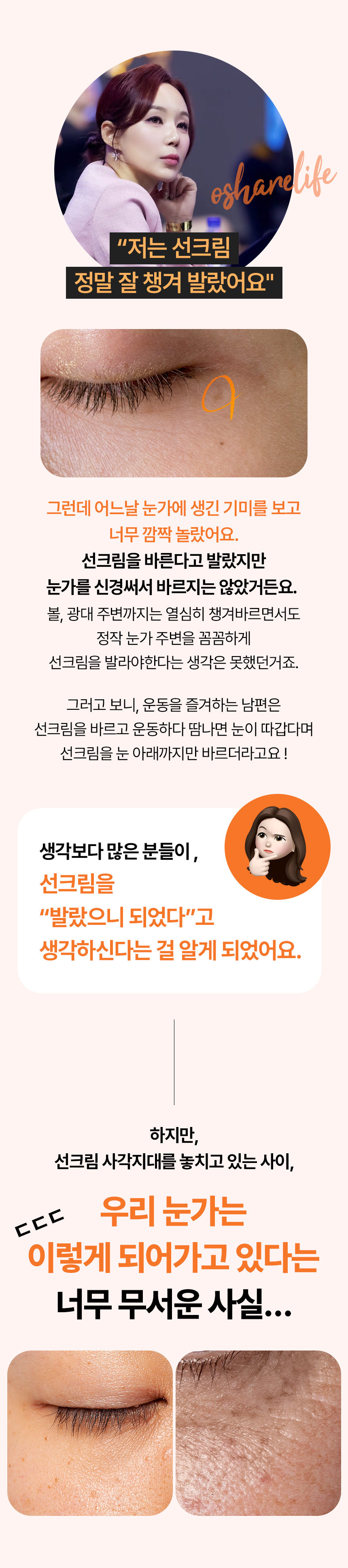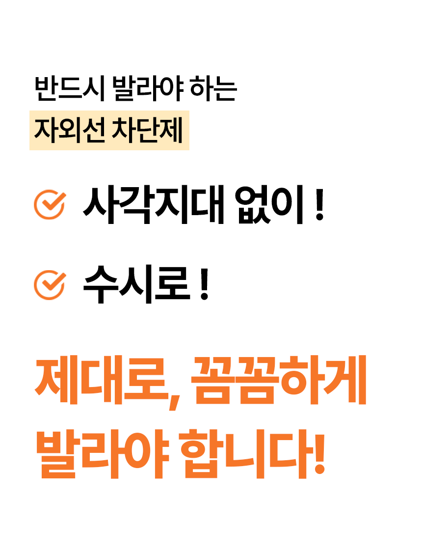 특히 선크림을 바를때 보통 깜빡하게되는 사각부위인 눈가에는 꼭 발라주세요 !